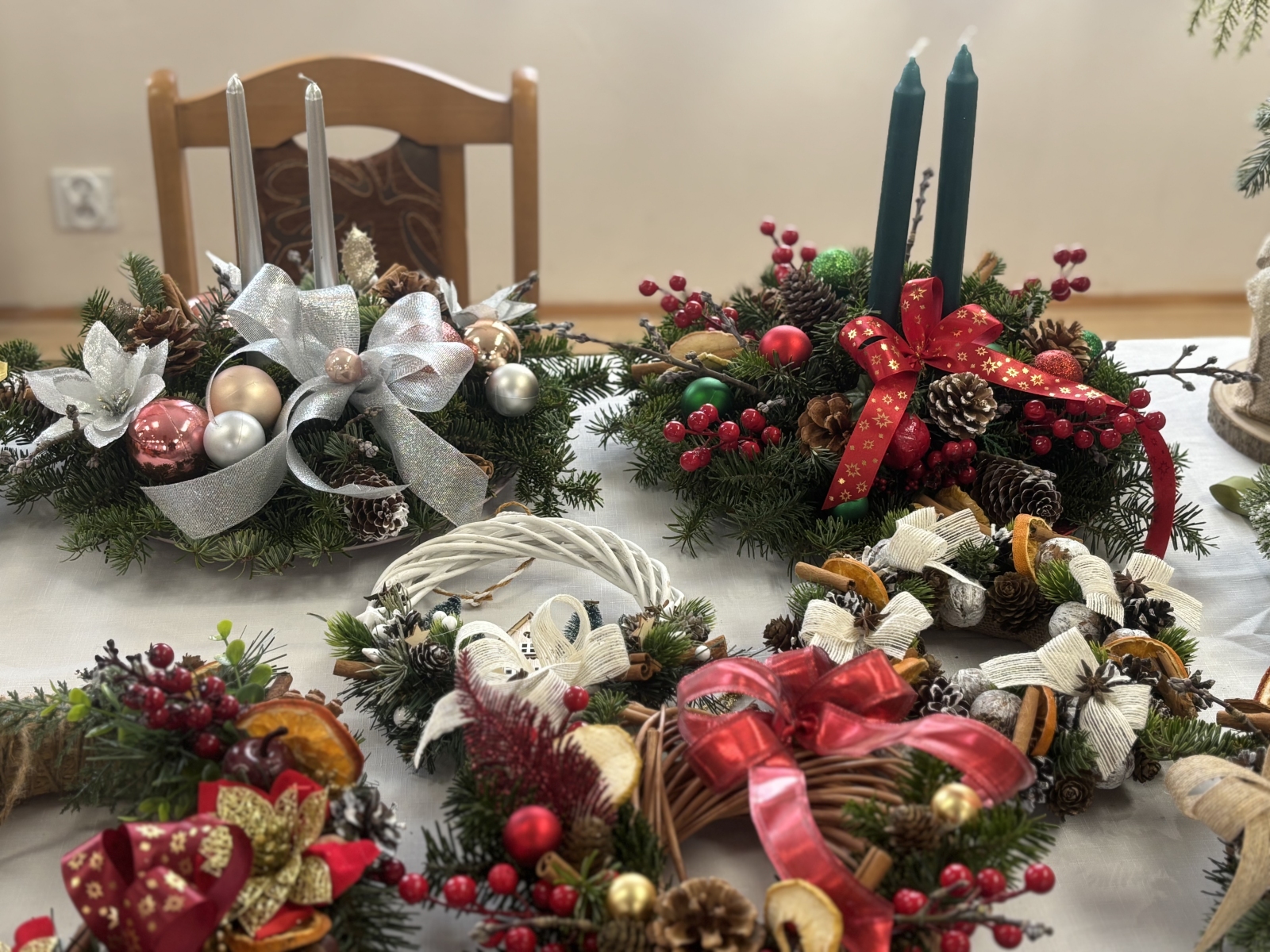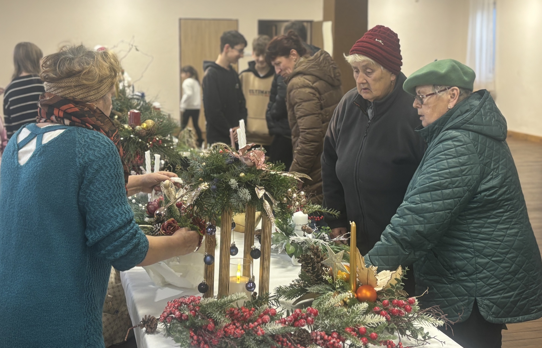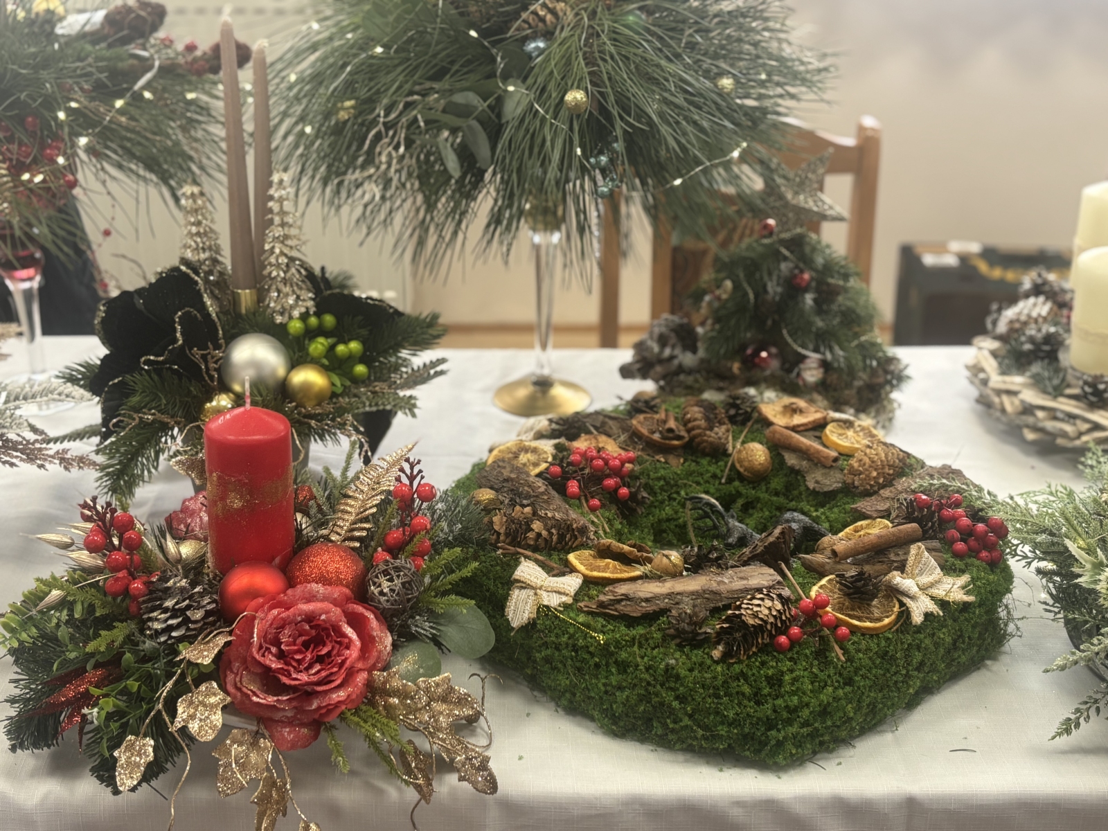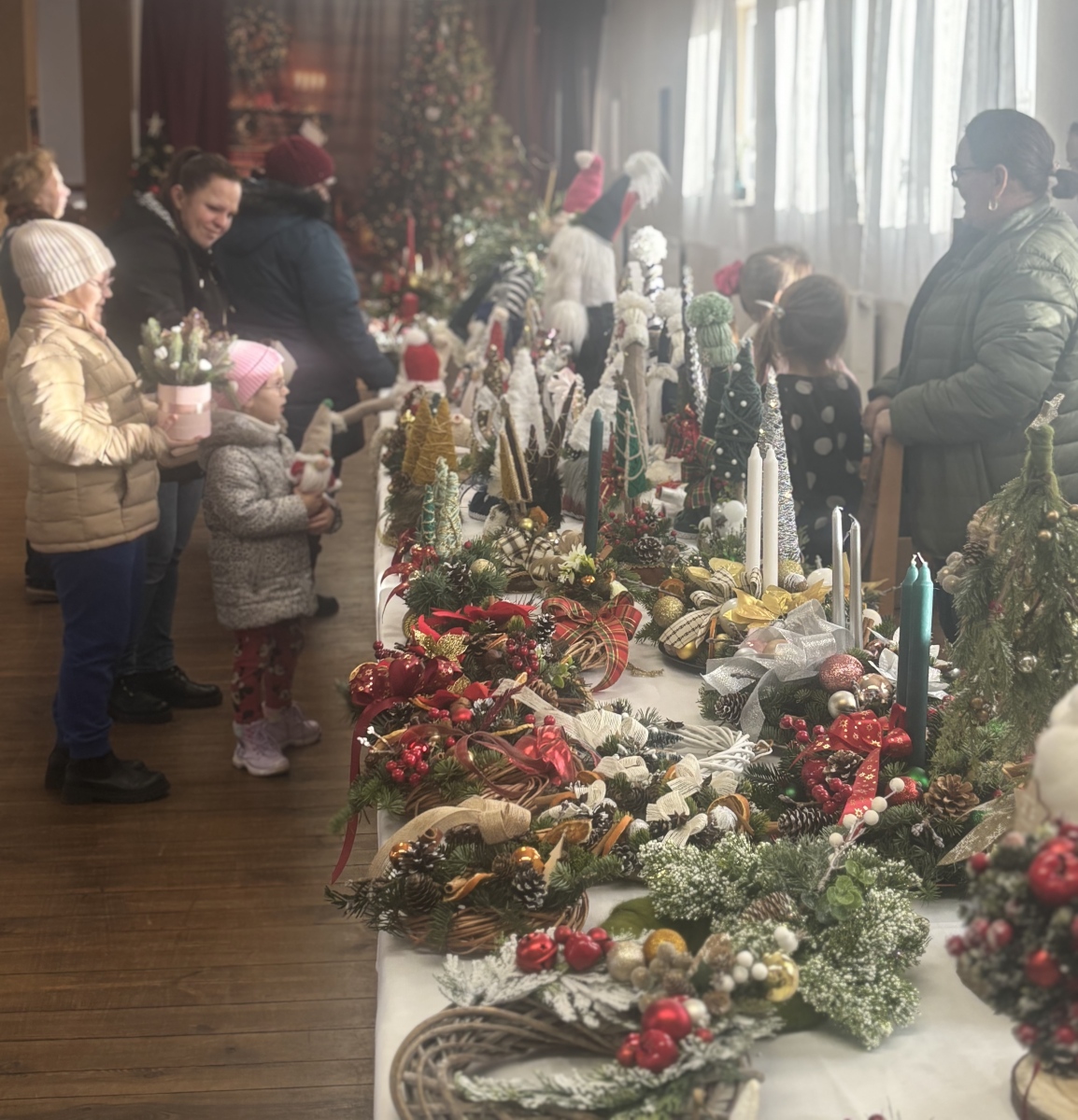 Ponadto na stoiskach dostępne były stroiki i ozdoby bożonarodzeniowe wykonane przez wystawców indywidualnych, którzy zaprezentowali wyjątkowe dekoracje świąteczne. Ich stoiska przyciągały uwagę bogactwem kolorów oraz różnorodnością kompozycji.