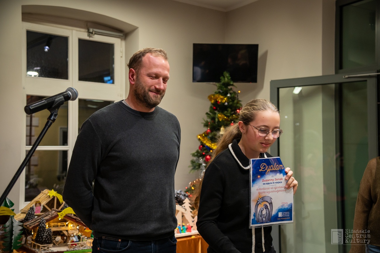 We wtorkowe popołudnie, 16 grudnia, w Niżańskim Centrum Kultury „Sokół” odbyło się uroczyste wręczenie dyplomów i nagród w Konkursie na Najciekawszą Szopkę Bożonarodzeniową 2025.