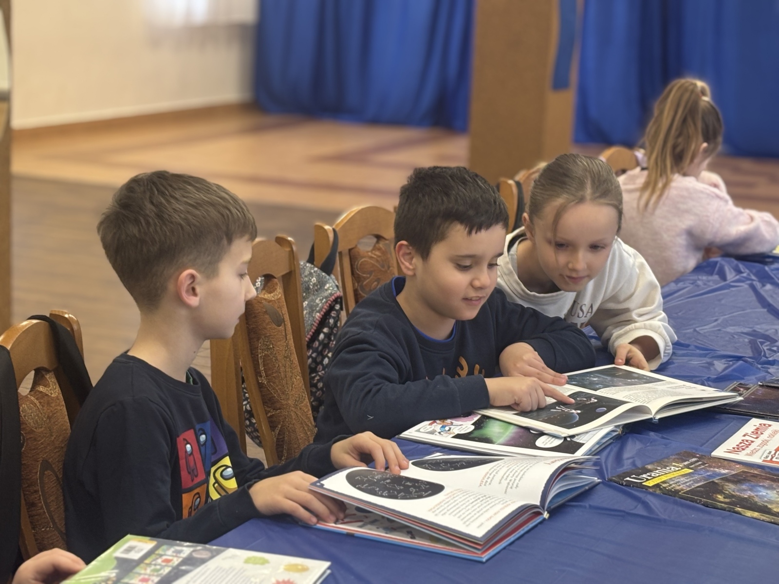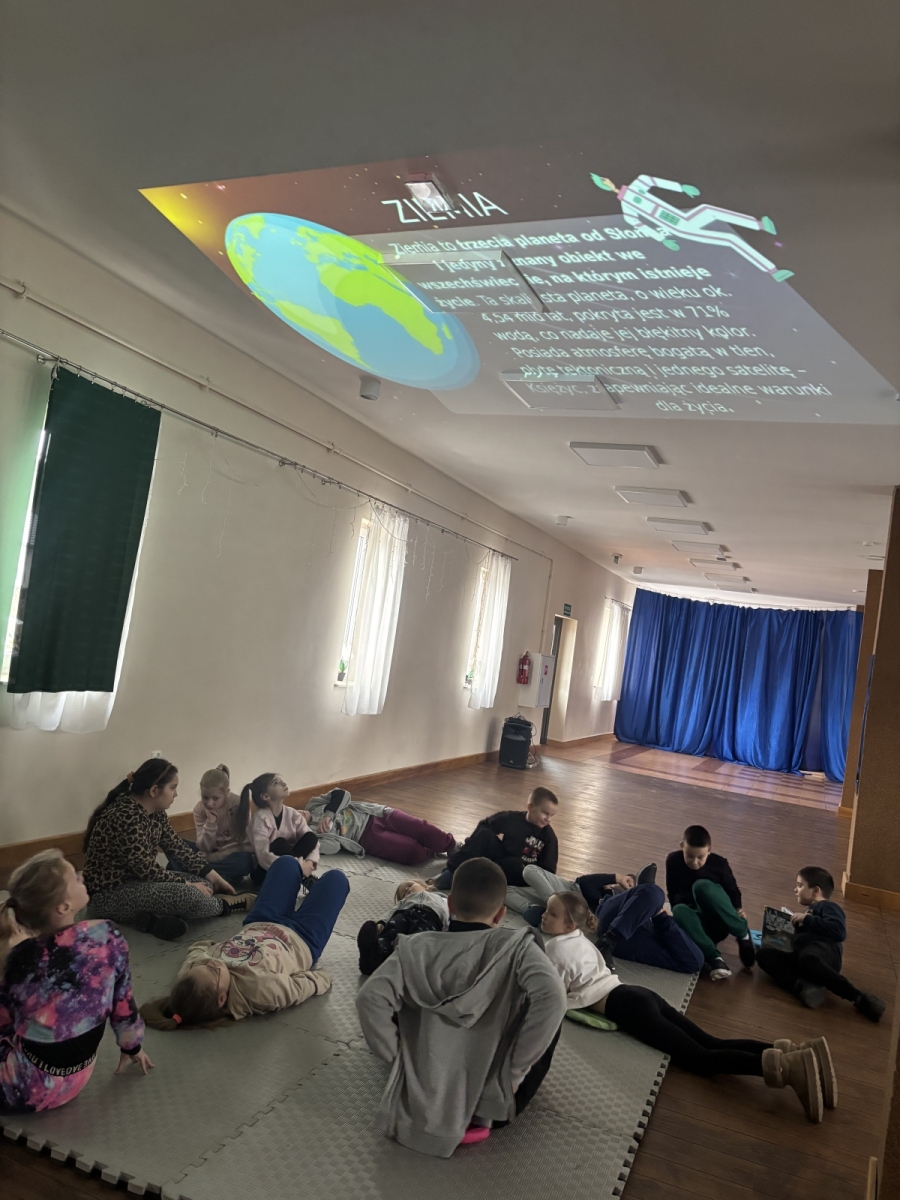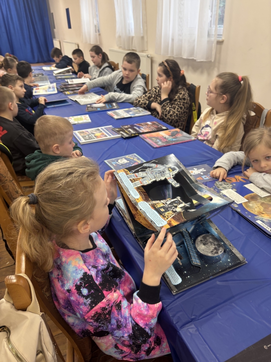 - spotkanie z Panią bibliotekarką – „Prezentacja kosmiczna” oraz kosmiczny turniej