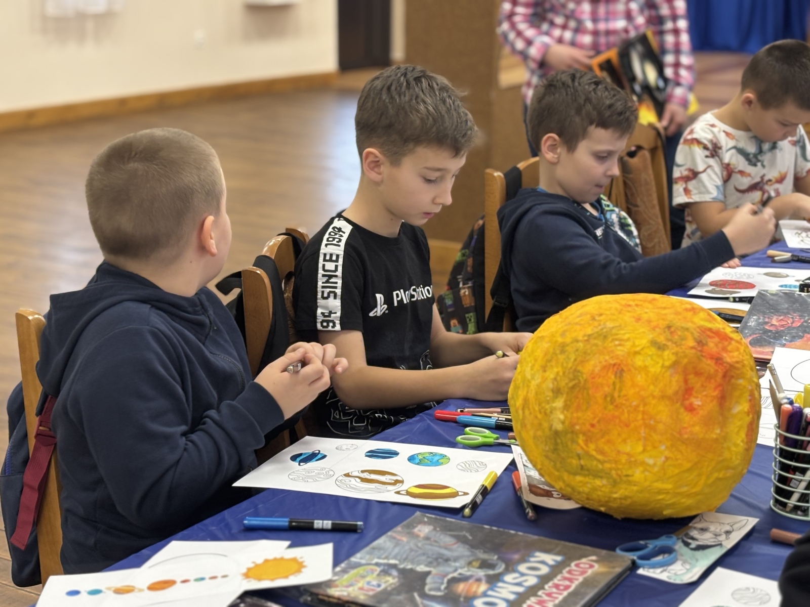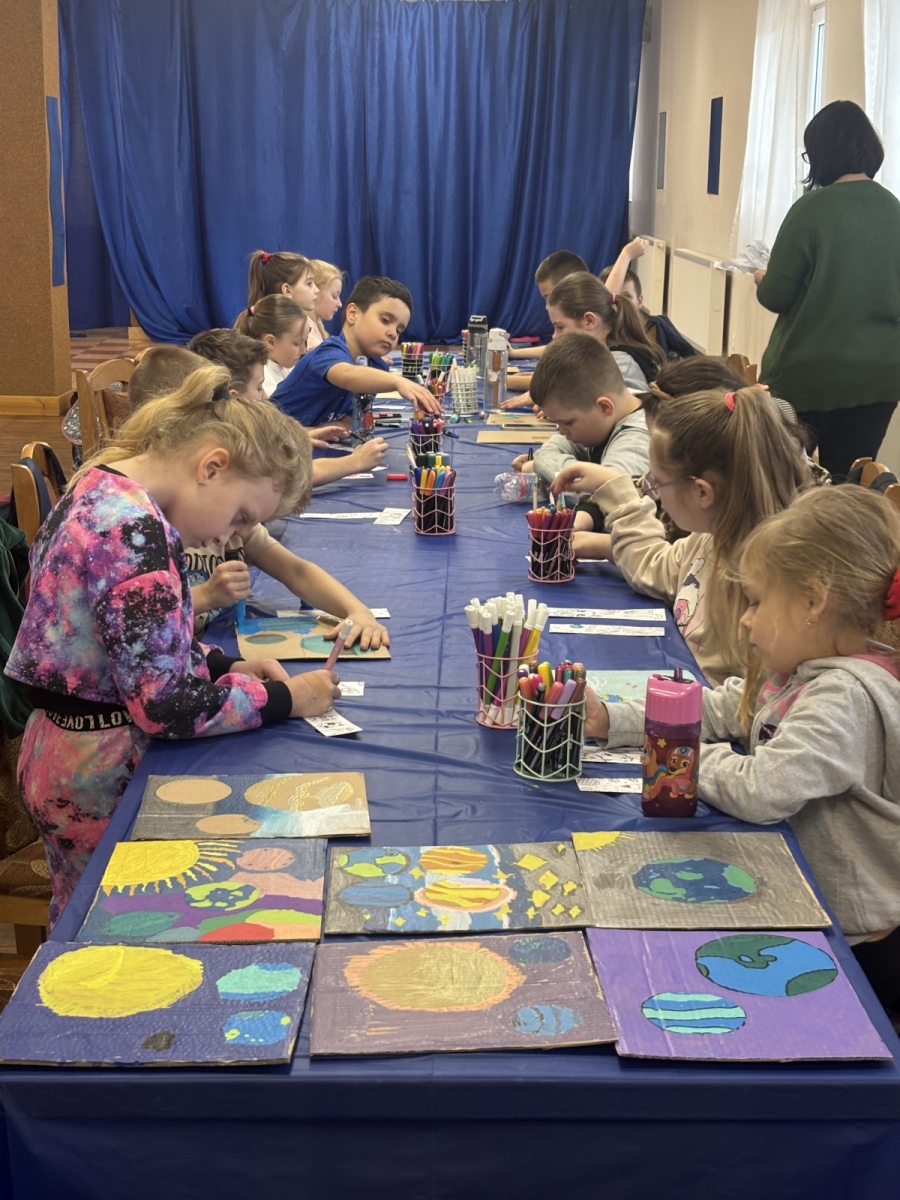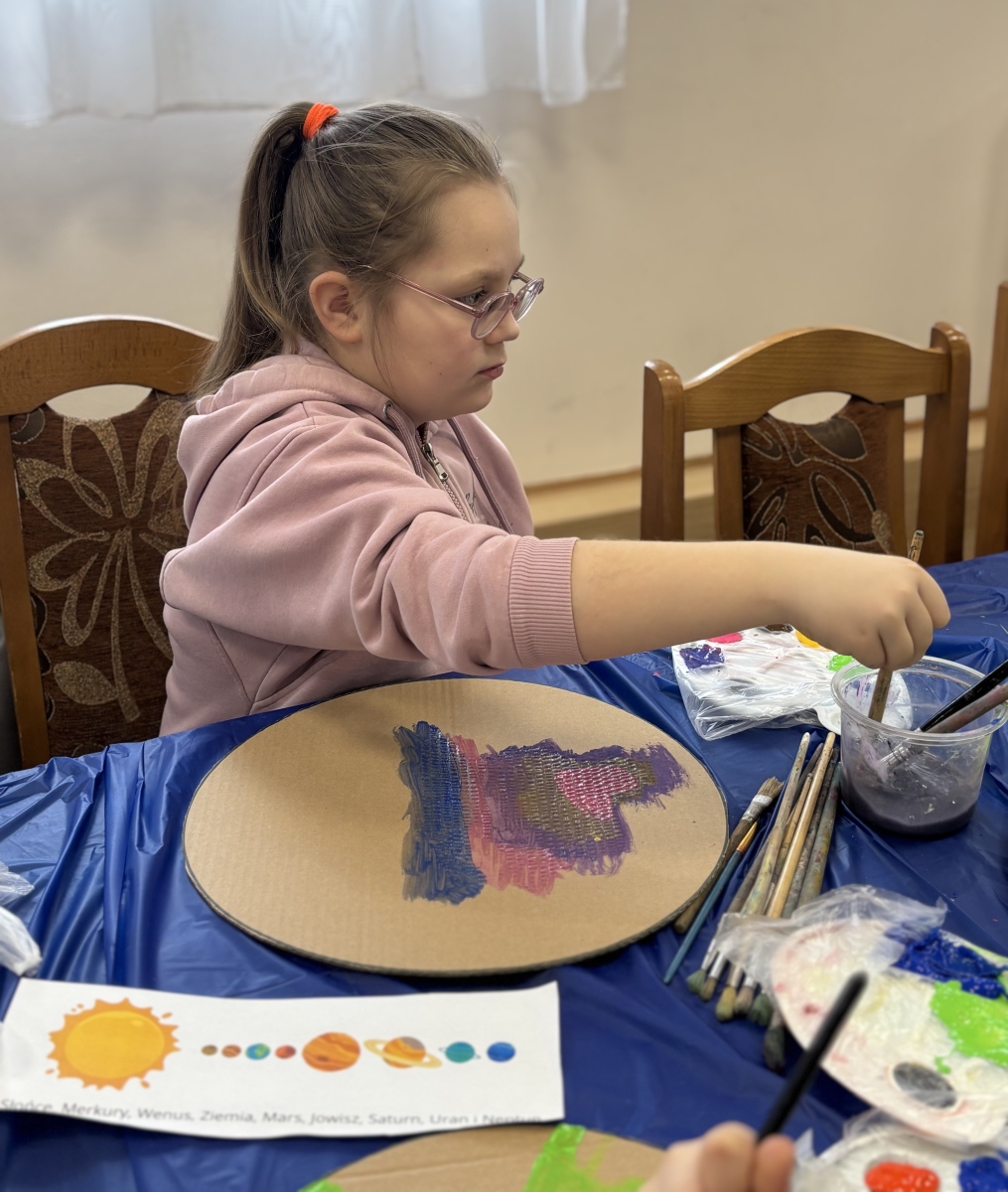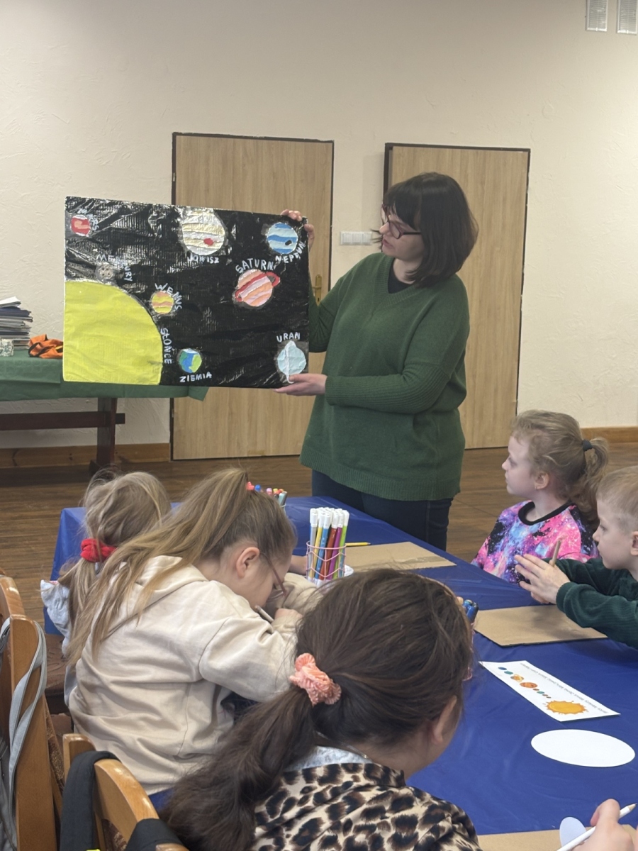 Nie zabrakło również warsztatów plastycznych. W ich ramach powstały: Układ Słoneczny i kolorowe planety.