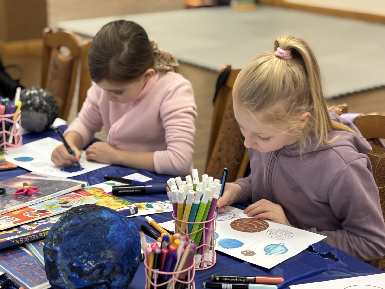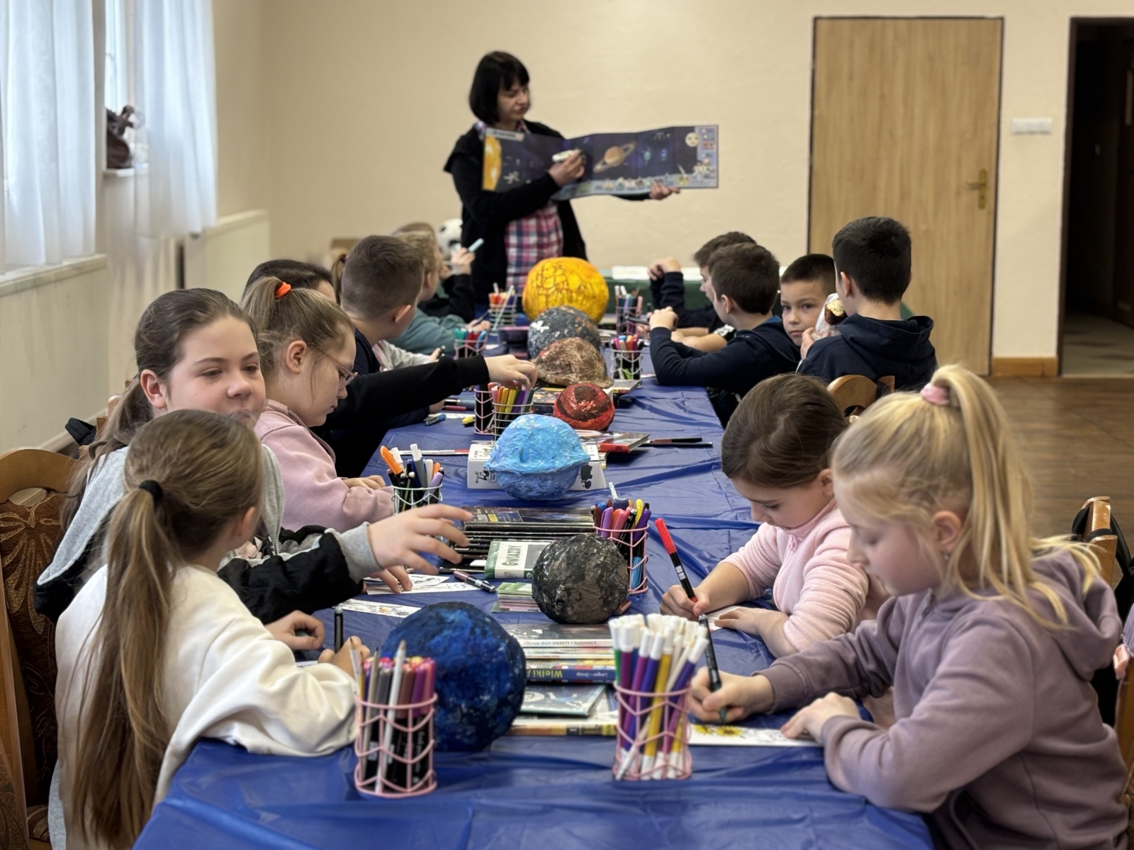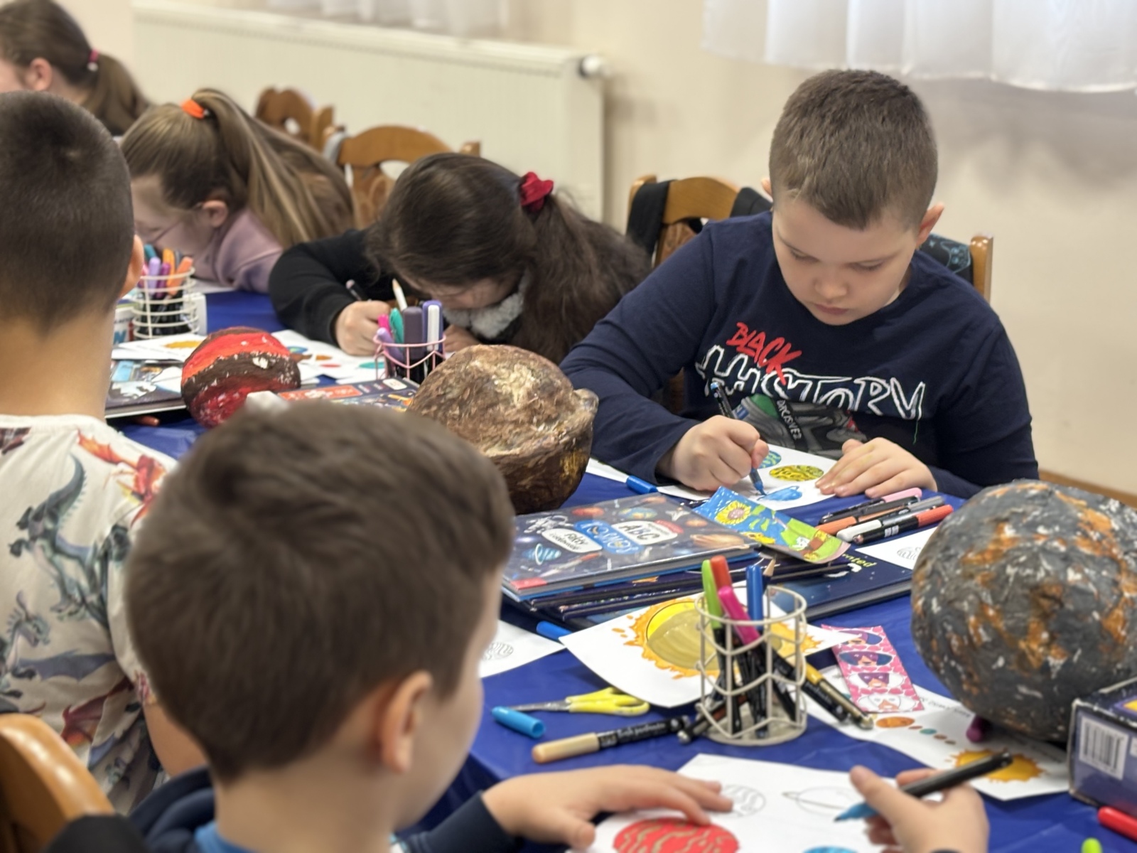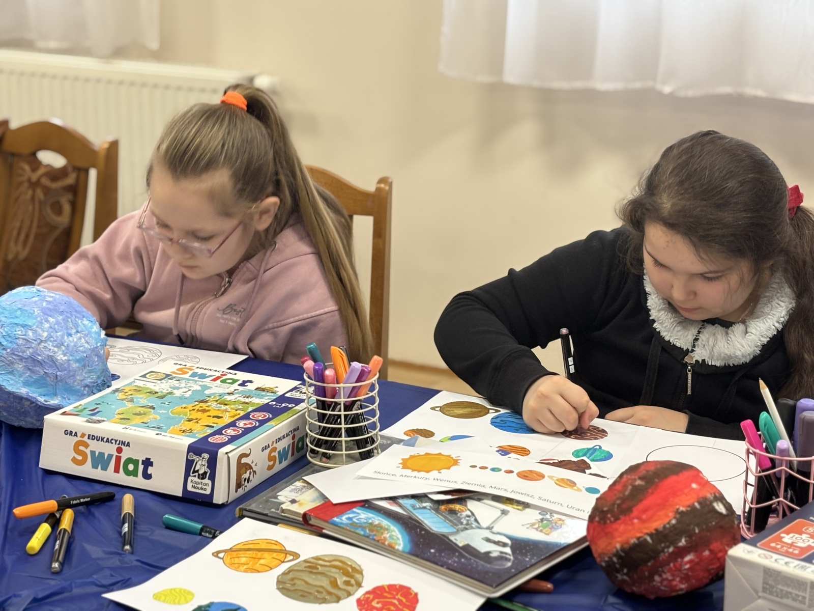 Nie zabrakło również warsztatów plastycznych. W ich ramach powstały: Układ Słoneczny i kolorowe planety.
