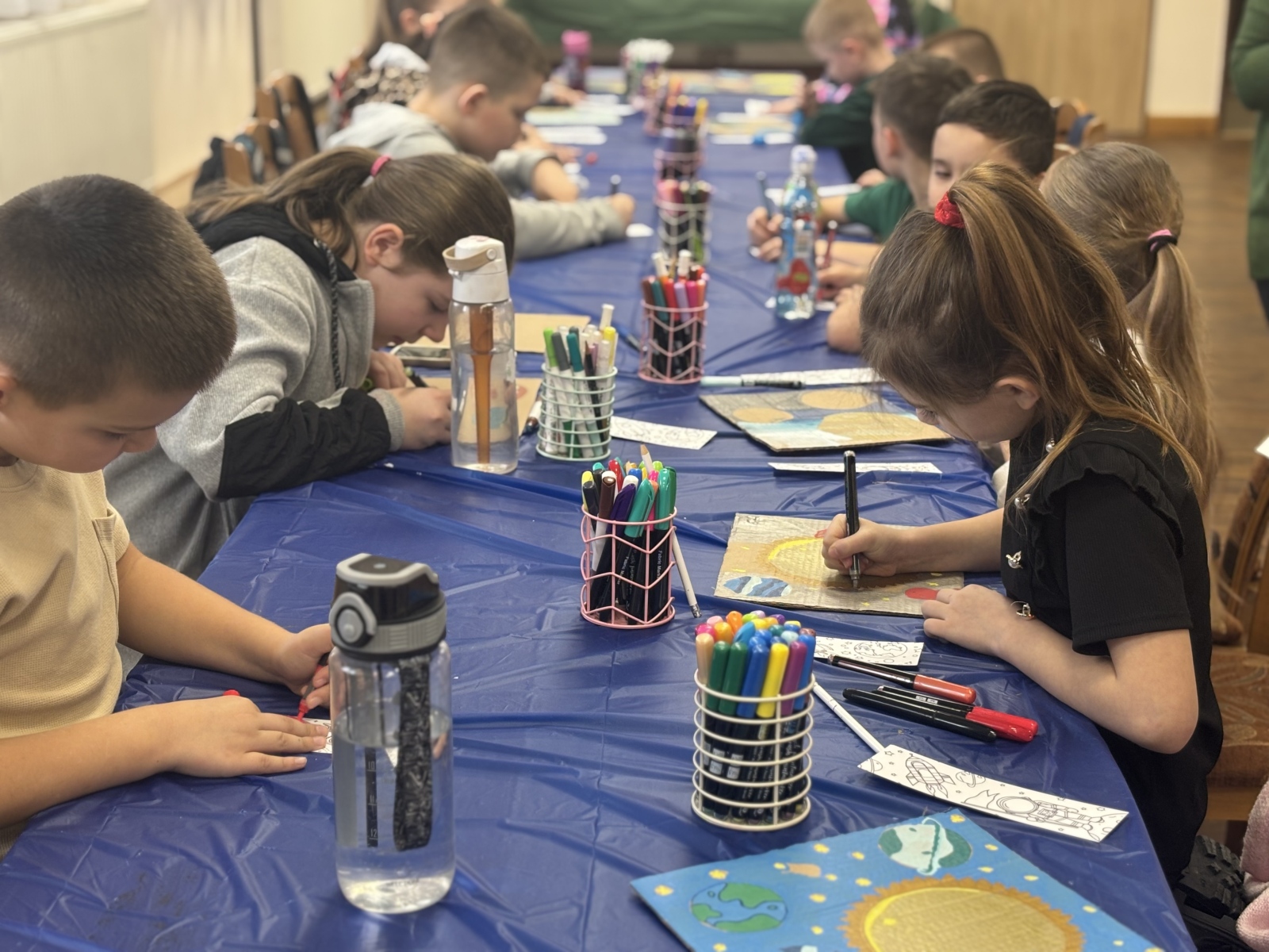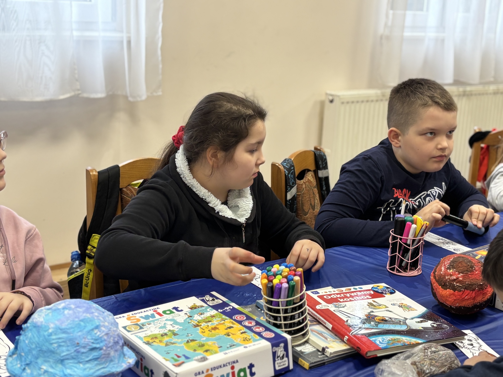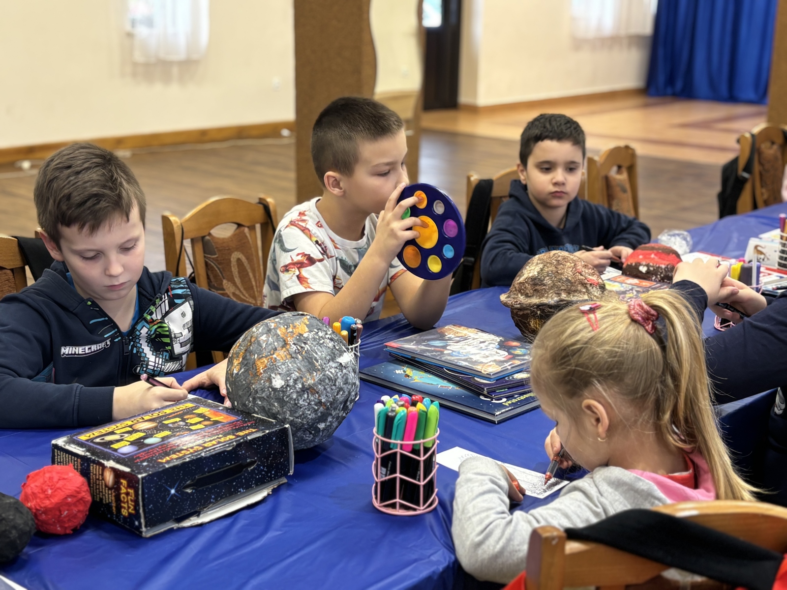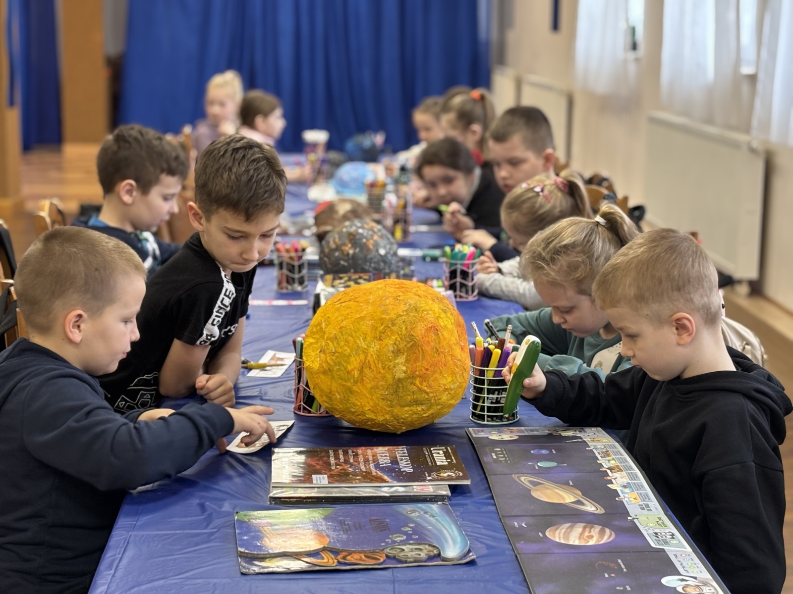 Nie zabrakło również warsztatów plastycznych. W ich ramach powstały: Układ Słoneczny i kolorowe planety.
