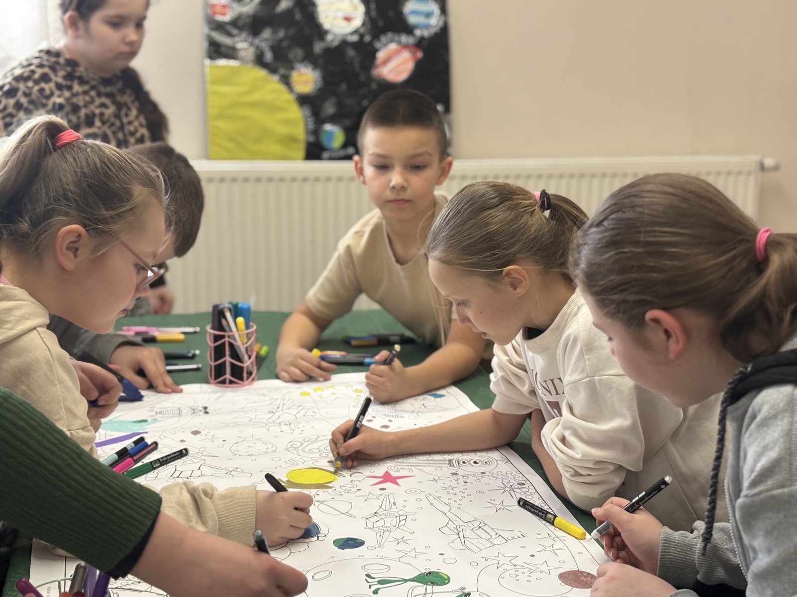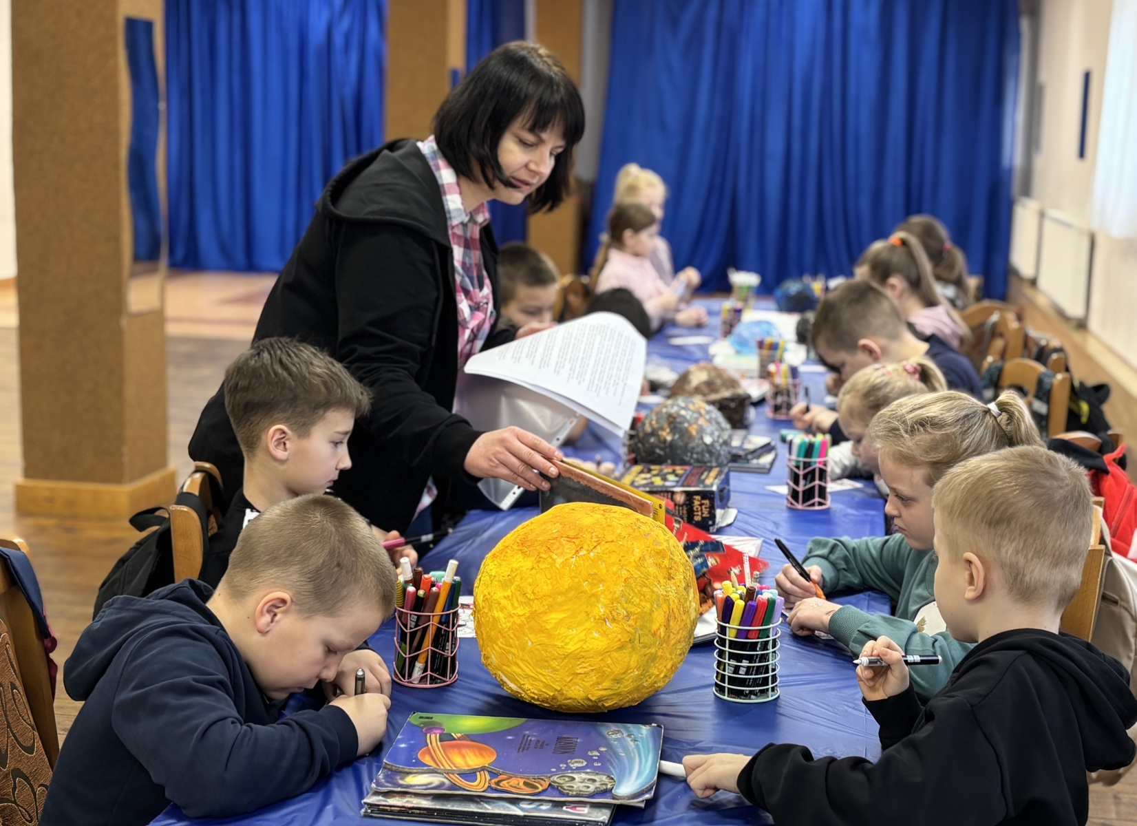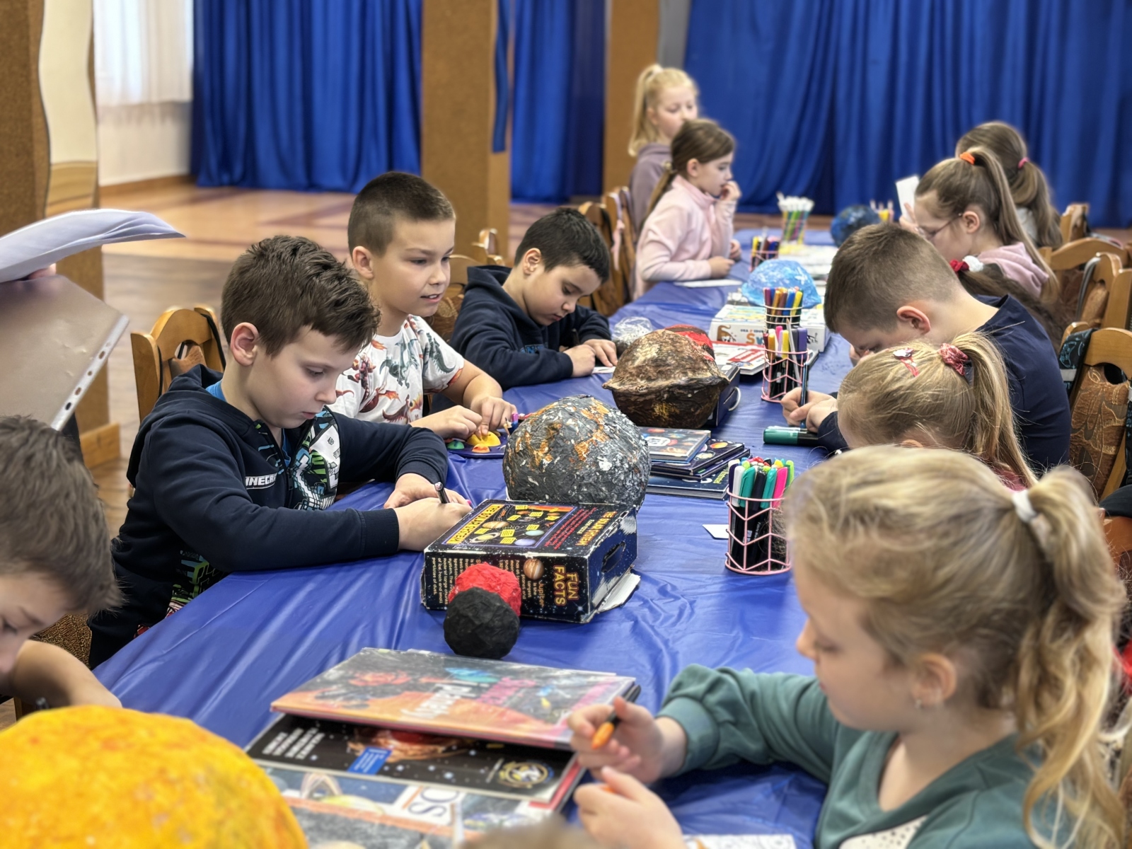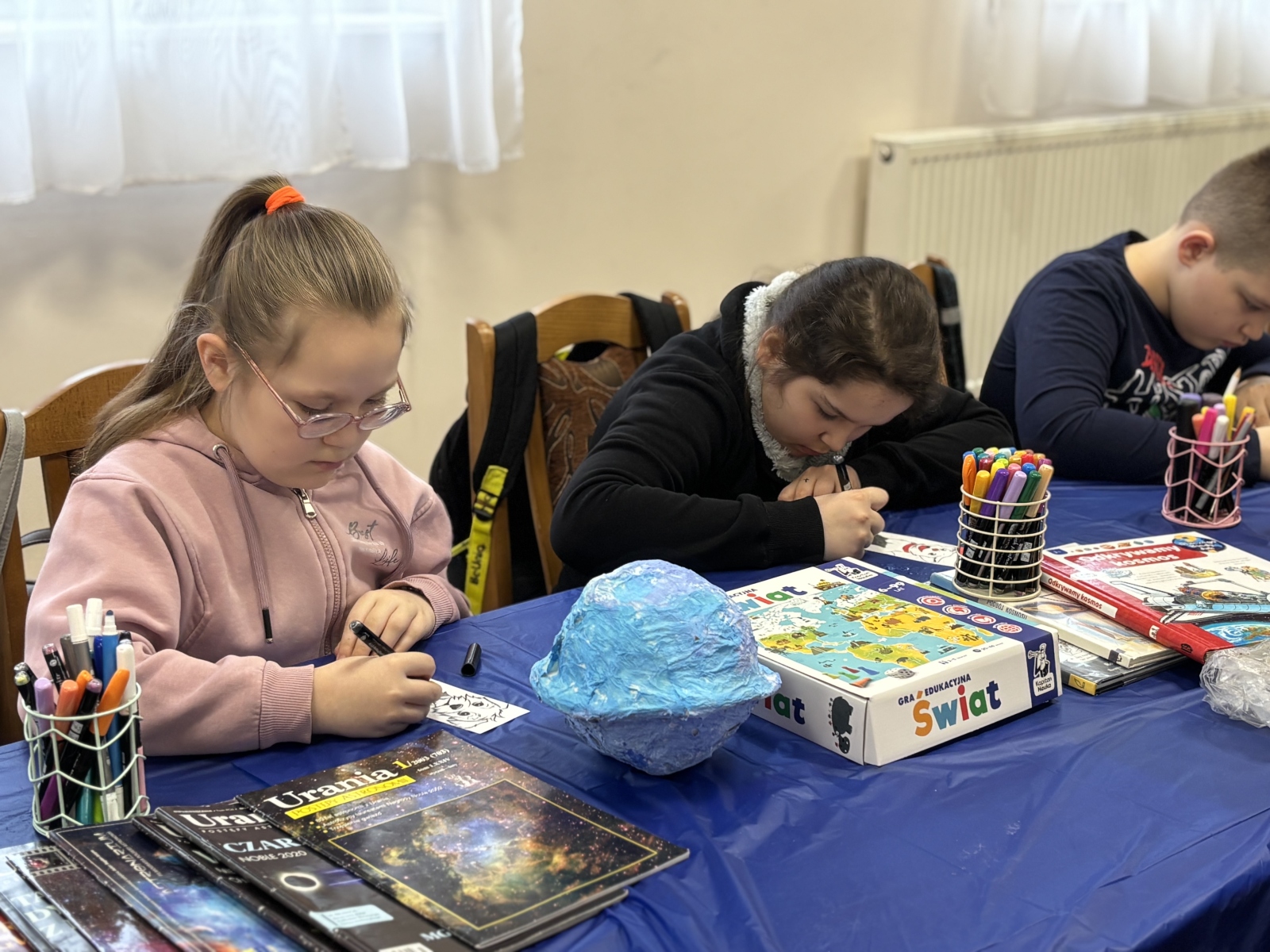 Nie zabrakło również warsztatów plastycznych. W ich ramach powstały: Układ Słoneczny i kolorowe planety.