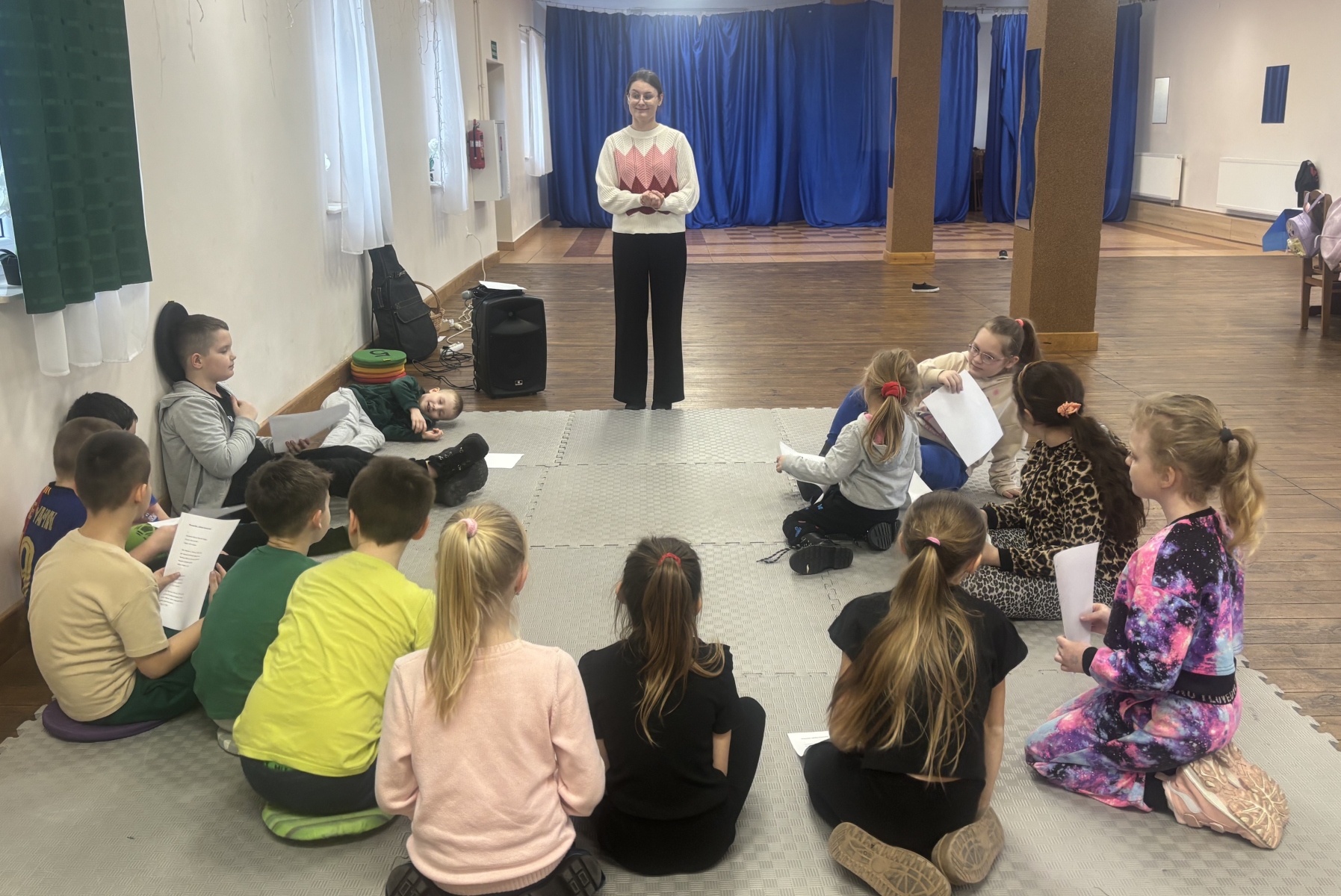 Podczas zajęć wokalnych dzieci, pod czujnym okiem Pani Gabrieli Obary, doskonaliły technikę śpiewu, a zwieńczeniem wspólnej pracy było wspólne wykonanie piosenki.