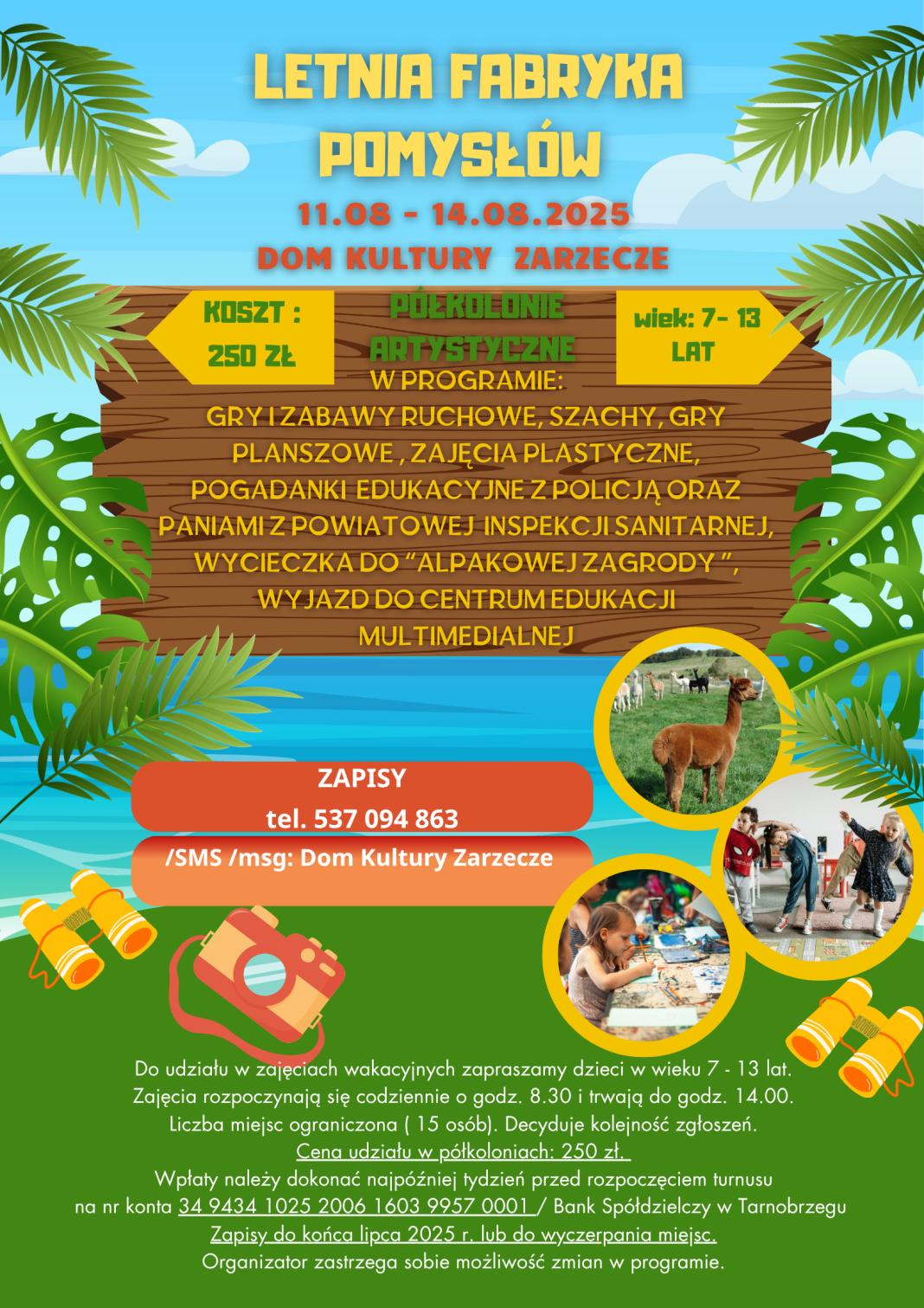 Płatność: przelewem z dopiskiem „Półkolonie oddział Zarzecze”