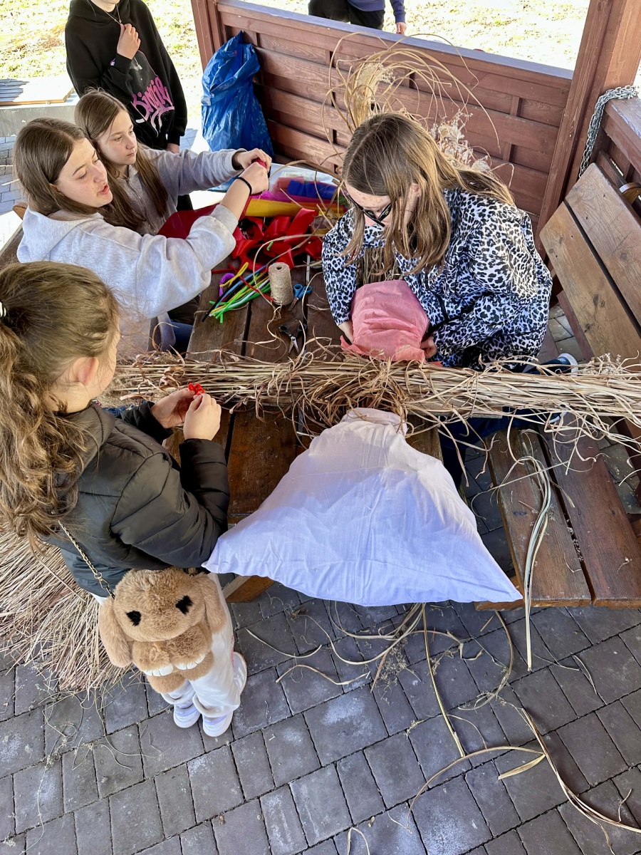 Warsztaty odbyły się w altanie „Pod Świętym Janem” nad Sanem. Dzieci, podzielone na dwie grupy, z dużym zaangażowaniem tworzyły Marzanny z naturalnych materiałów, takich jak trawa, bibuła oraz inne dostępne surowce plastyczne. Każda grupa wykazała się kreatywnością i pomysłowością w przygotowaniu swojej kukły.