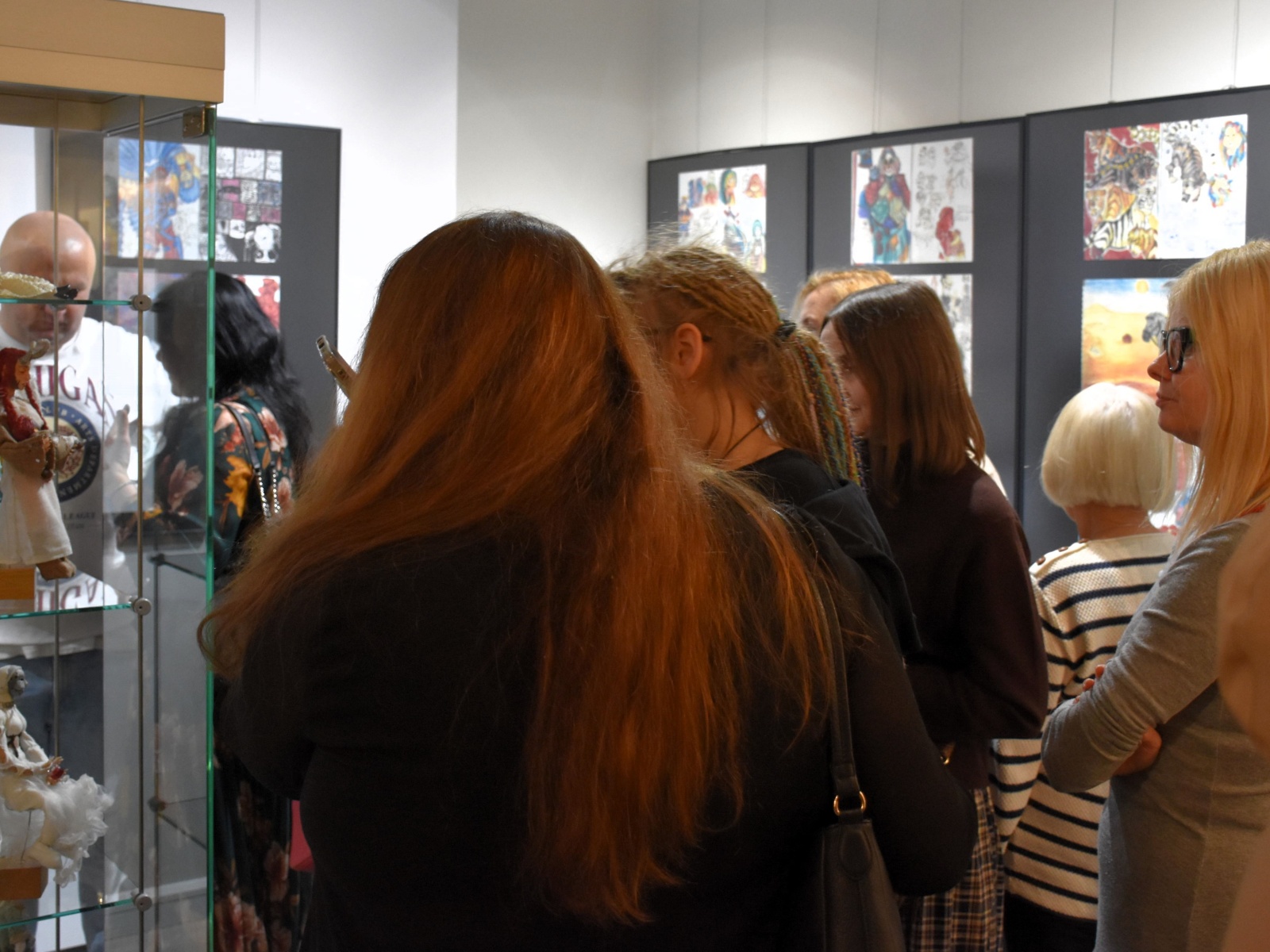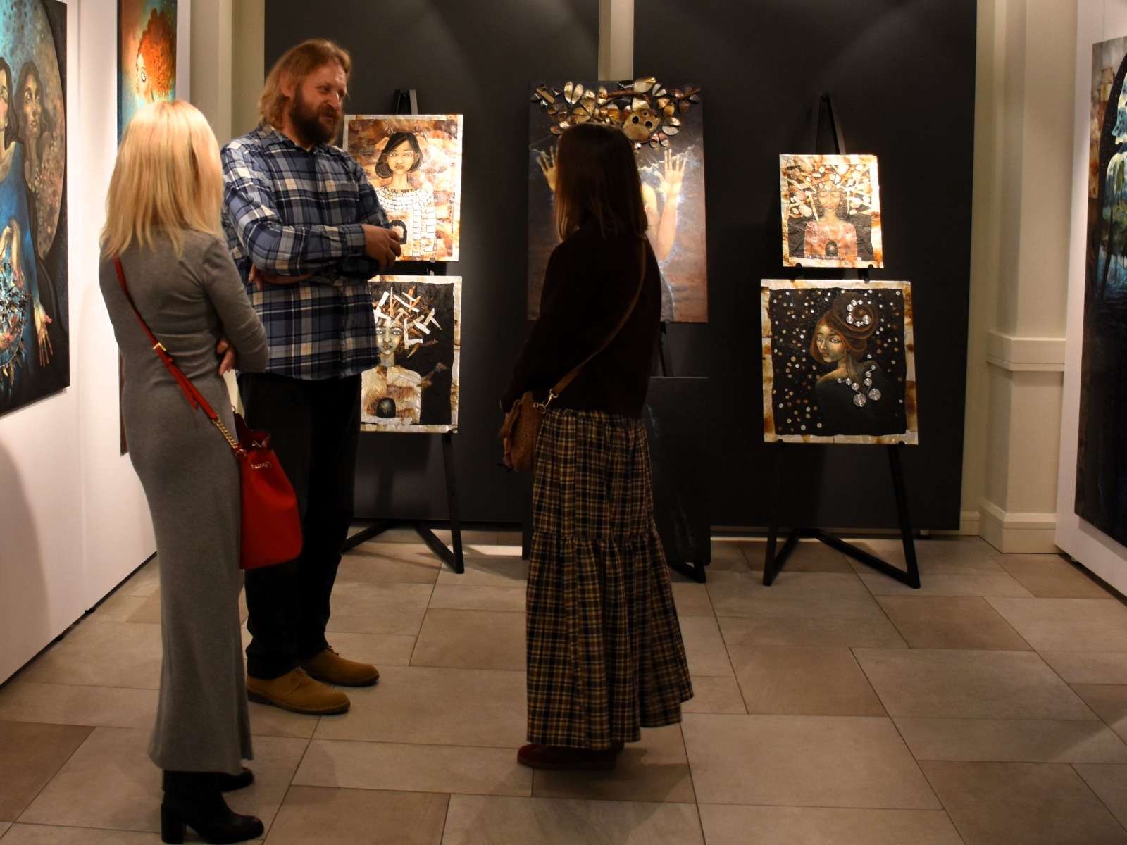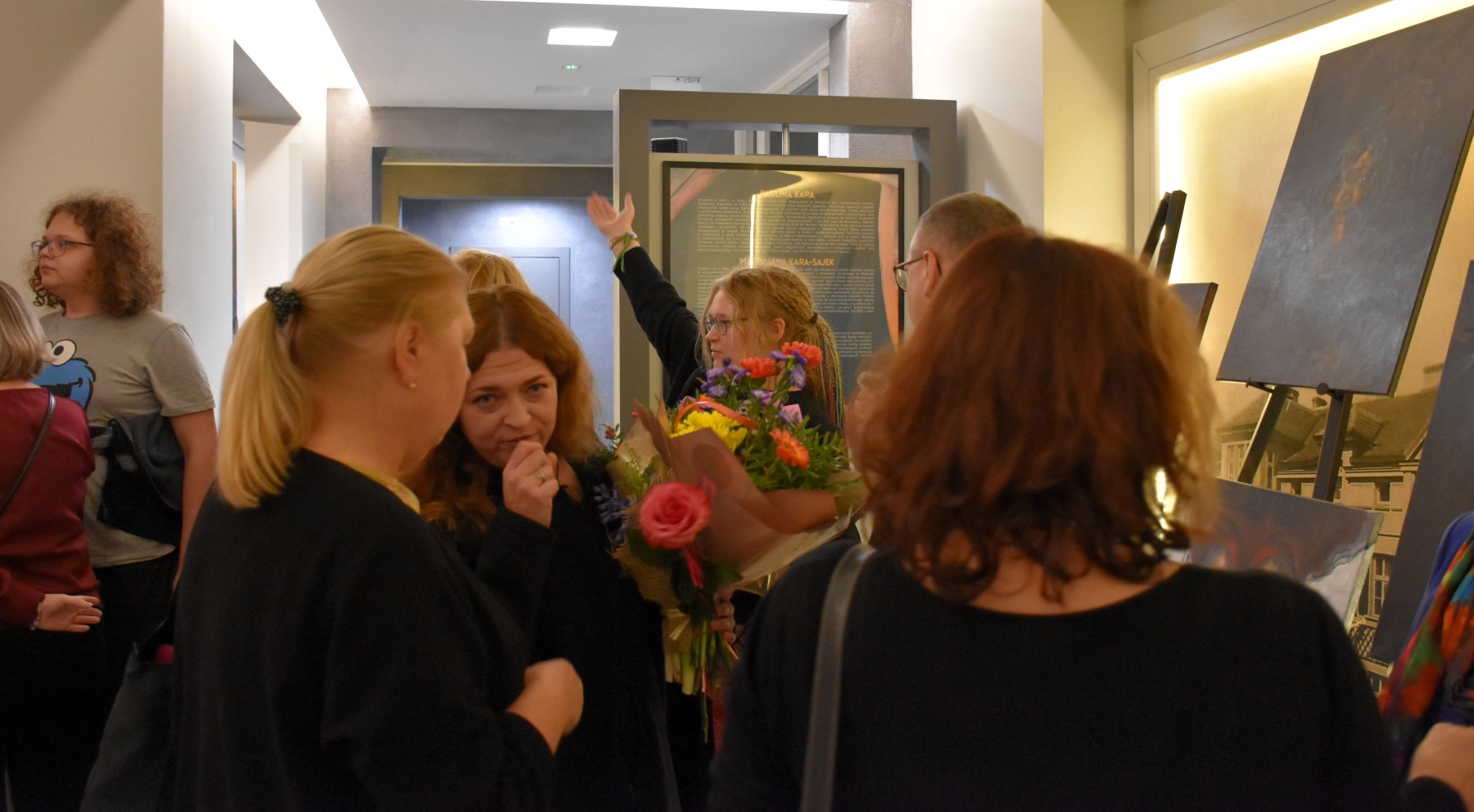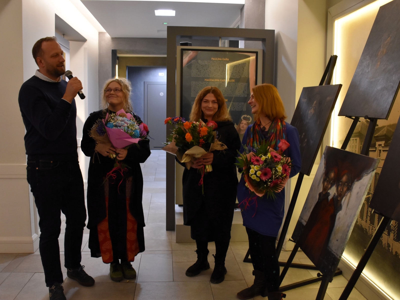 Wydarzenie zgromadziło prawdziwe tłumy – frekwencja była znakomita, a centrum wypełniło się po brzegi. Gości powitali Dyrektor NCK „Sokół” Radosław Maziarz wraz z Autorkami prac, wprowadzając publiczność w świat sztuki pełen emocji, symboli i wyobraźni.