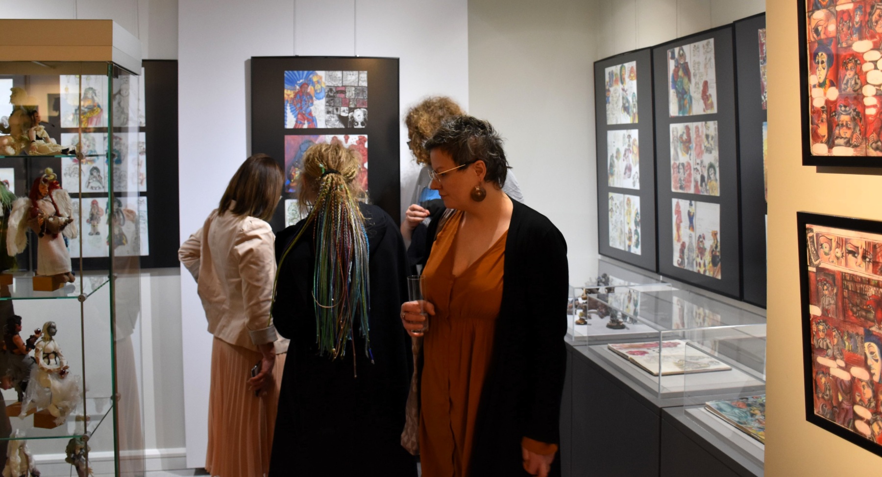Ekspozycja łączy malarstwo, rysunek, lalkarstwo, rzeźbę oraz instalacje przestrzenne.