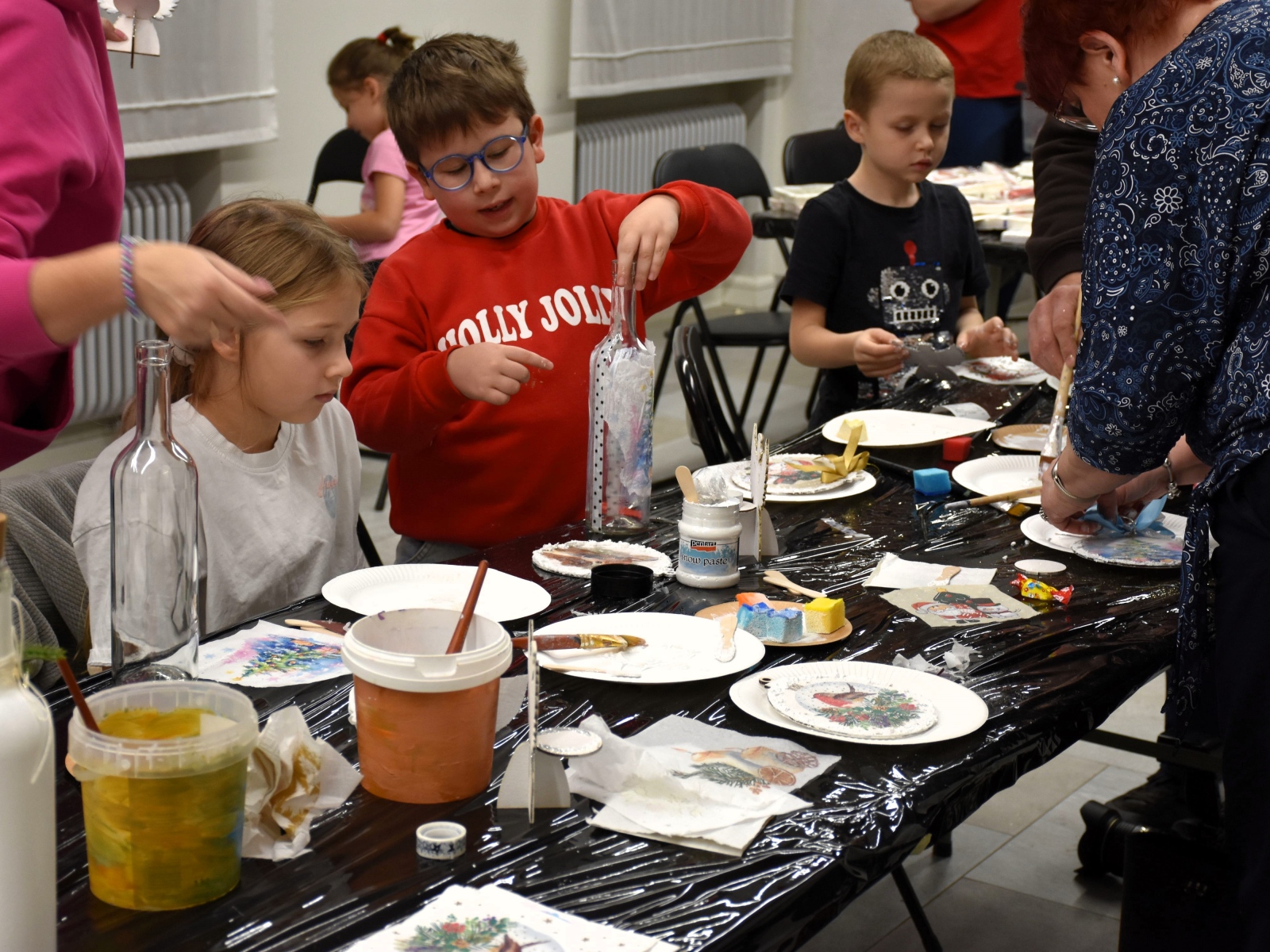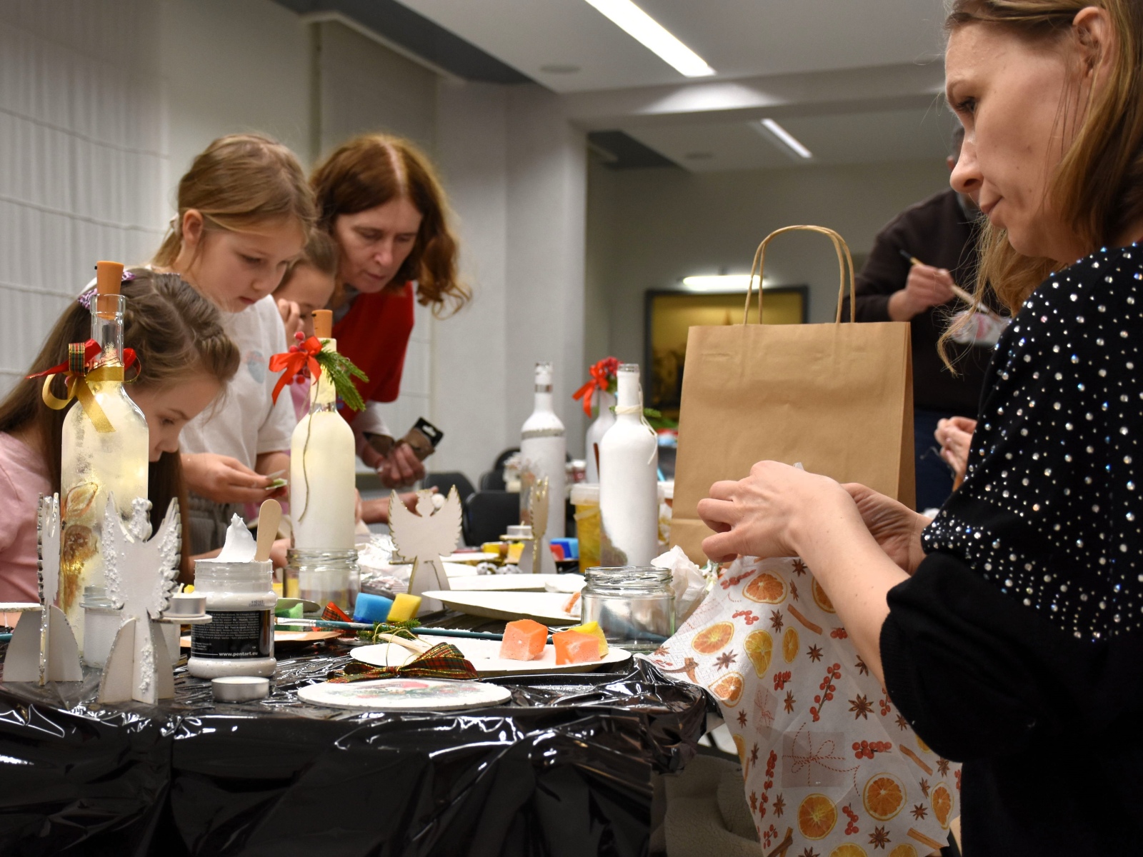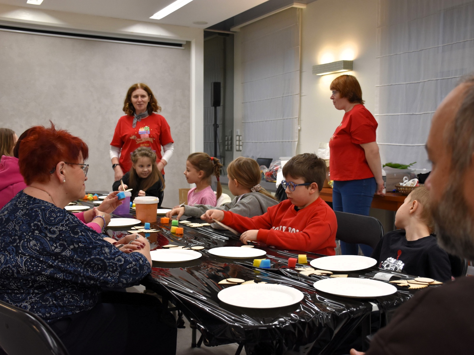 Atmosfera wydarzenia była naprawdę niezwykła – pełna ciepła, bliskości i rodzinnej energii. Dzieci z entuzjazmem angażowały się w tworzenie ozdób, a dorośli z uśmiechem wspierali ich pomysły, sami się twórczo angażując odkrywając w sobie ukryte pasję. Wspólne chwile przy stołach warsztatowych sprzyjały rozmowom, śmiechom i budowaniu więzi, które nadały spotkaniu wyjątkowy, domowy charakter.