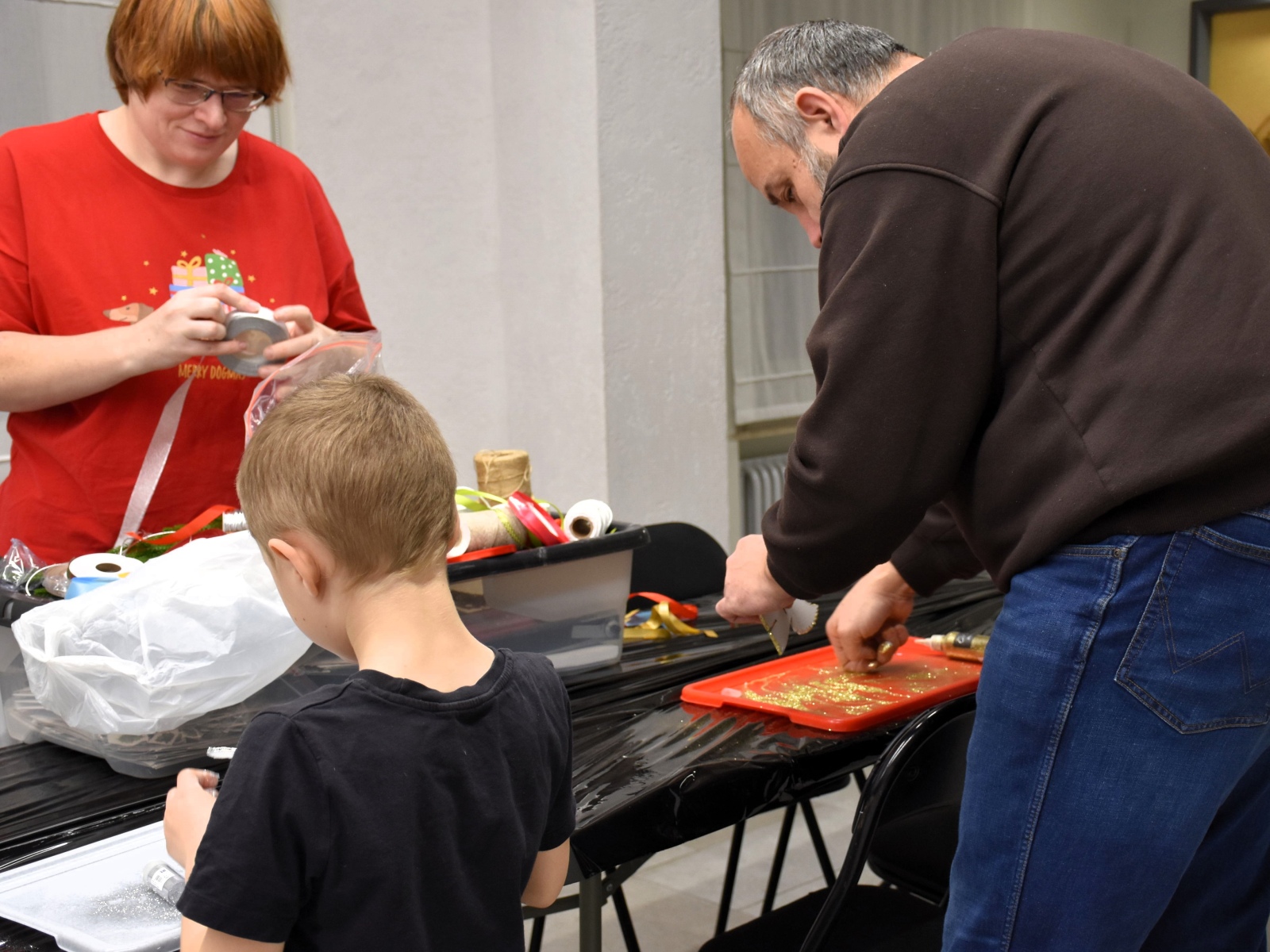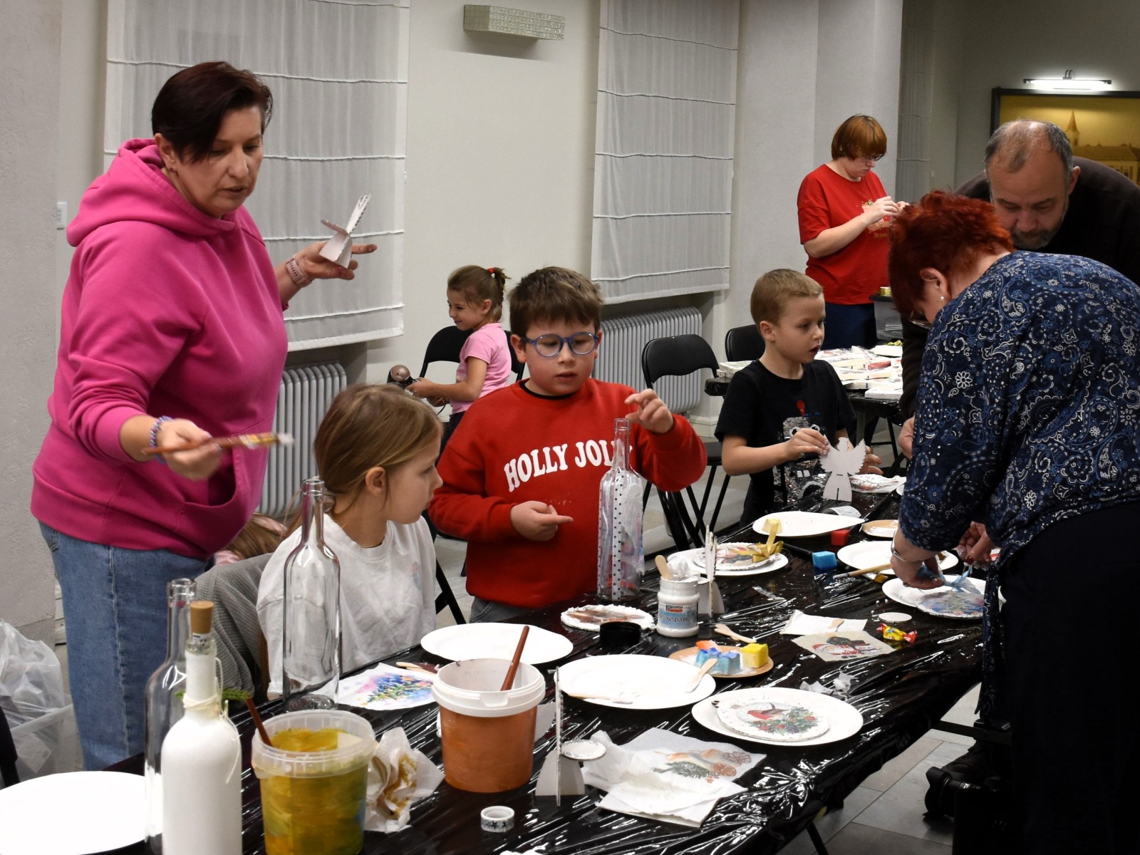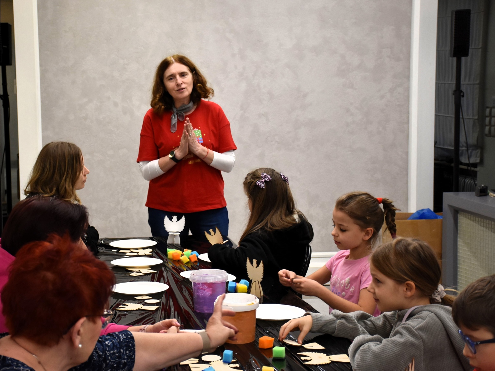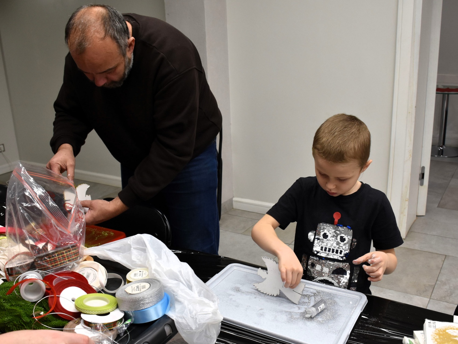 Atmosfera wydarzenia była naprawdę niezwykła – pełna ciepła, bliskości i rodzinnej energii. Dzieci z entuzjazmem angażowały się w tworzenie ozdób, a dorośli z uśmiechem wspierali ich pomysły, sami się twórczo angażując odkrywając w sobie ukryte pasję. Wspólne chwile przy stołach warsztatowych sprzyjały rozmowom, śmiechom i budowaniu więzi, które nadały spotkaniu wyjątkowy, domowy charakter.