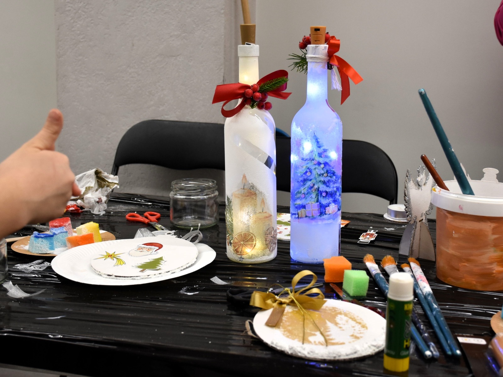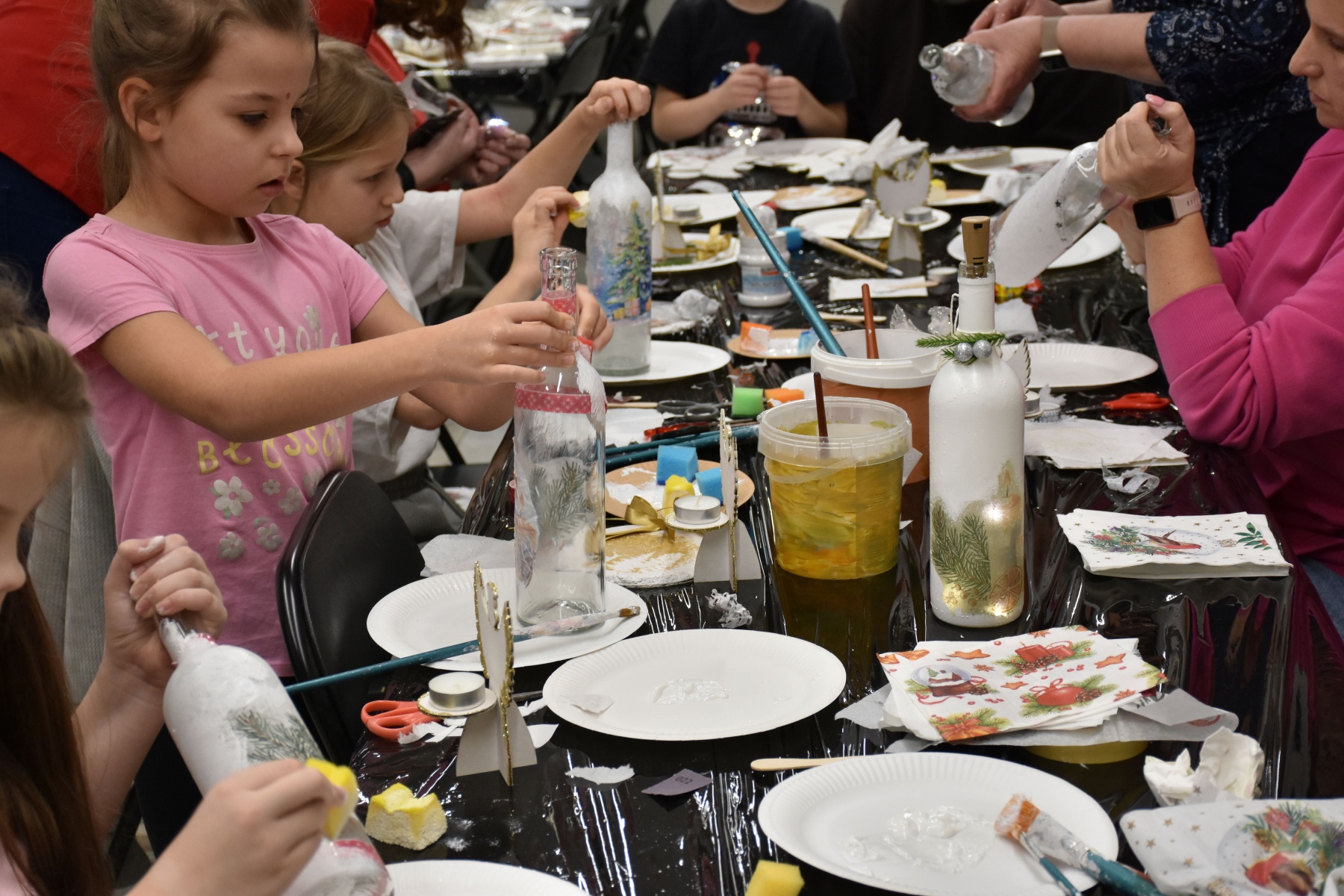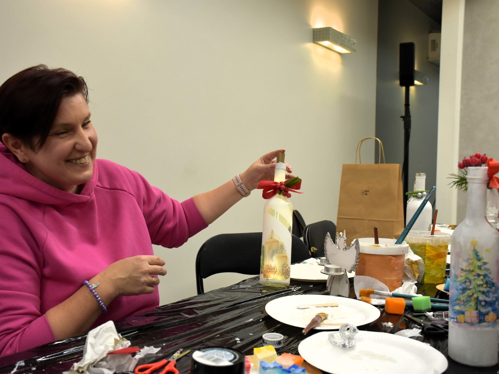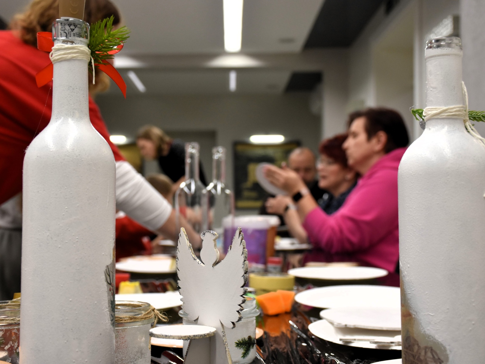 Powstały niepowtarzalne dekoracje – od lampionów po subtelne zawieszki na choinkę. Szczególnym zainteresowaniem cieszyło się tworzenie świątecznych lampek, które rozświetliły salę i wprowadziły magiczny nastrój, idealnie wpisujący się w klimat nadchodzących świąt.
