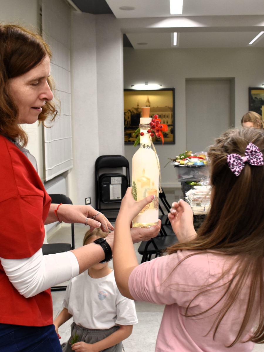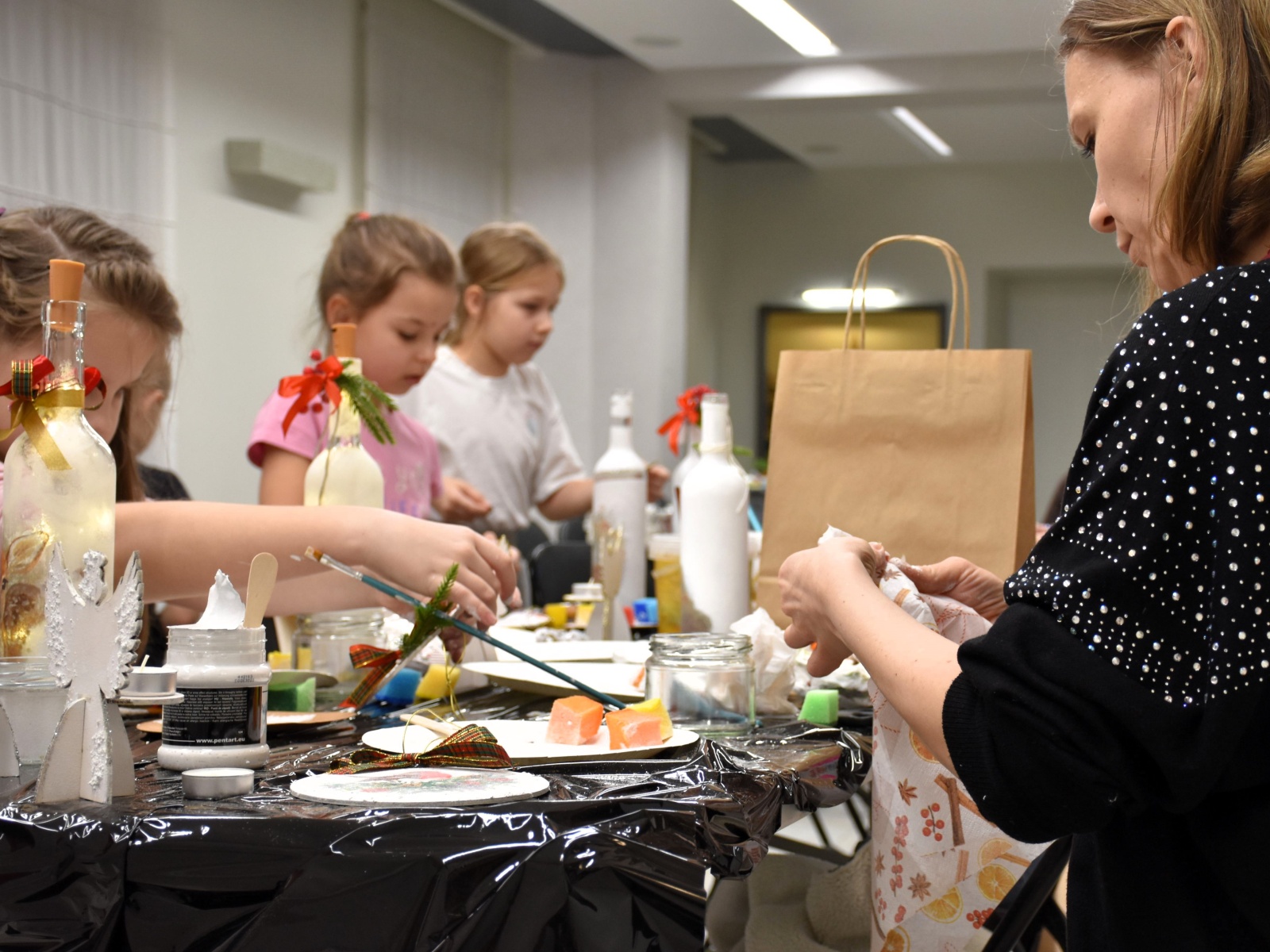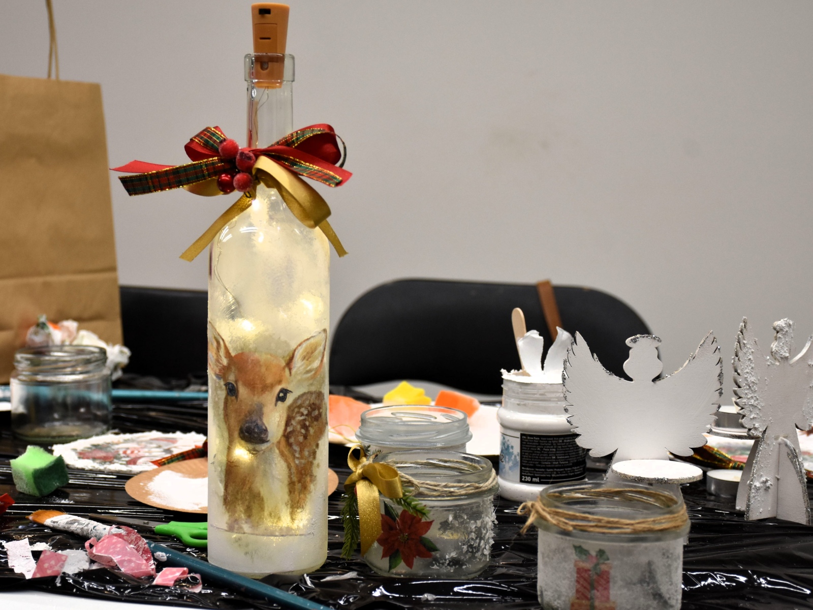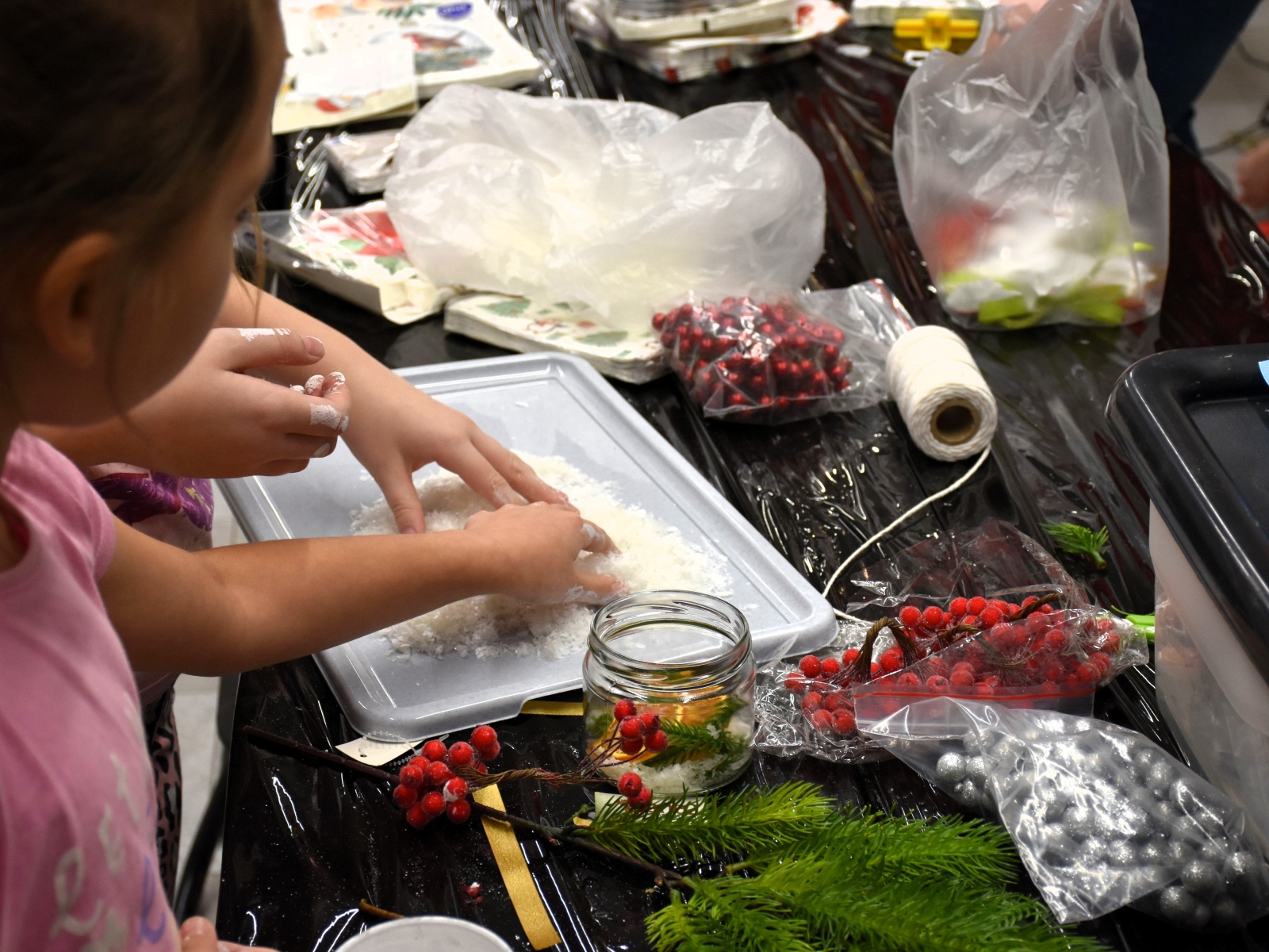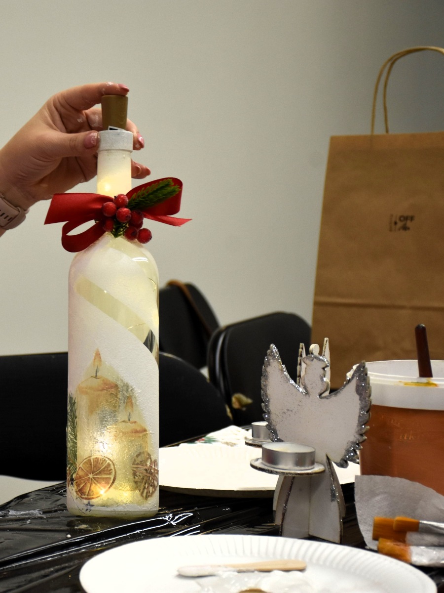 Powstały niepowtarzalne dekoracje – od lampionów po subtelne zawieszki na choinkę. Szczególnym zainteresowaniem cieszyło się tworzenie świątecznych lampek, które rozświetliły salę i wprowadziły magiczny nastrój, idealnie wpisujący się w klimat nadchodzących świąt.