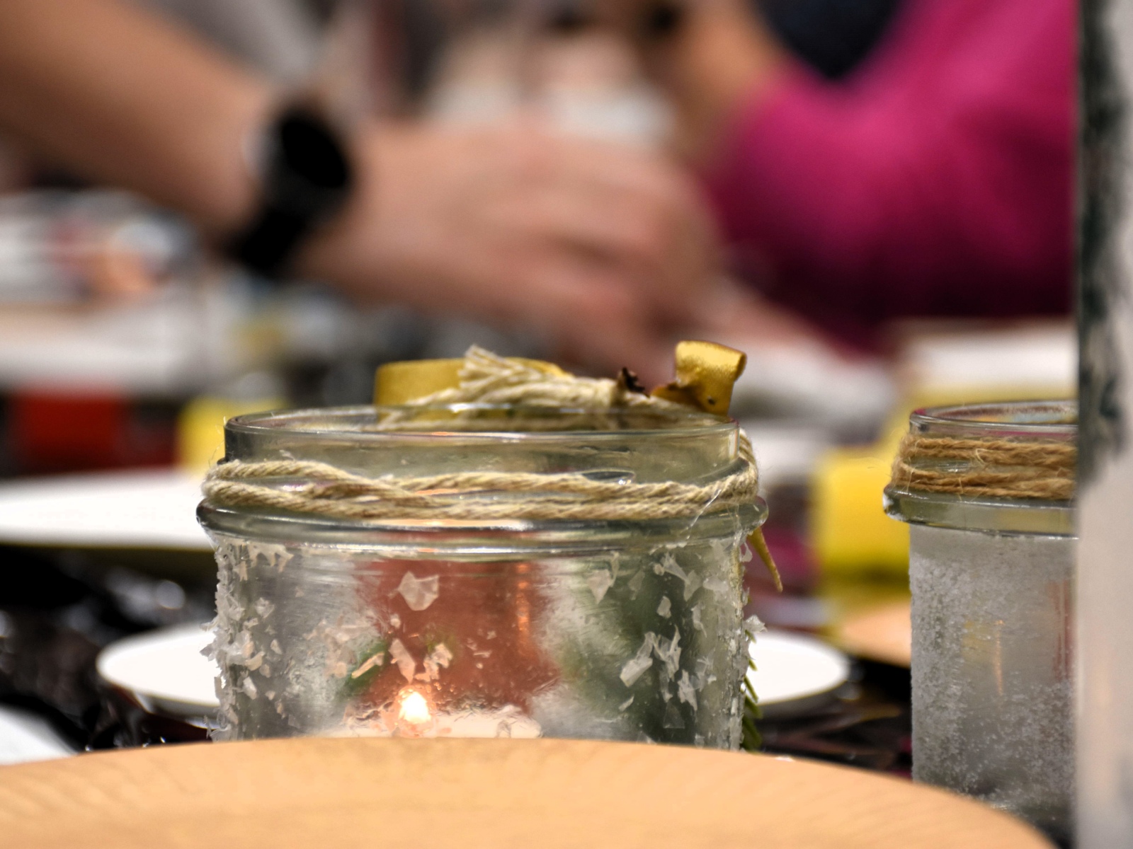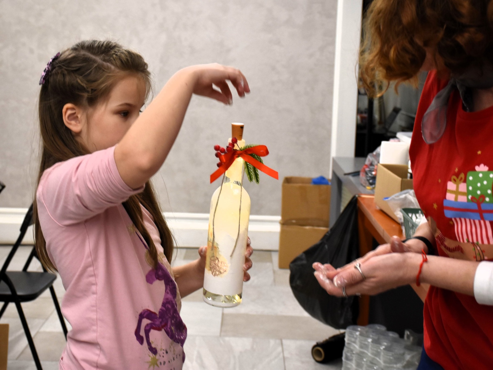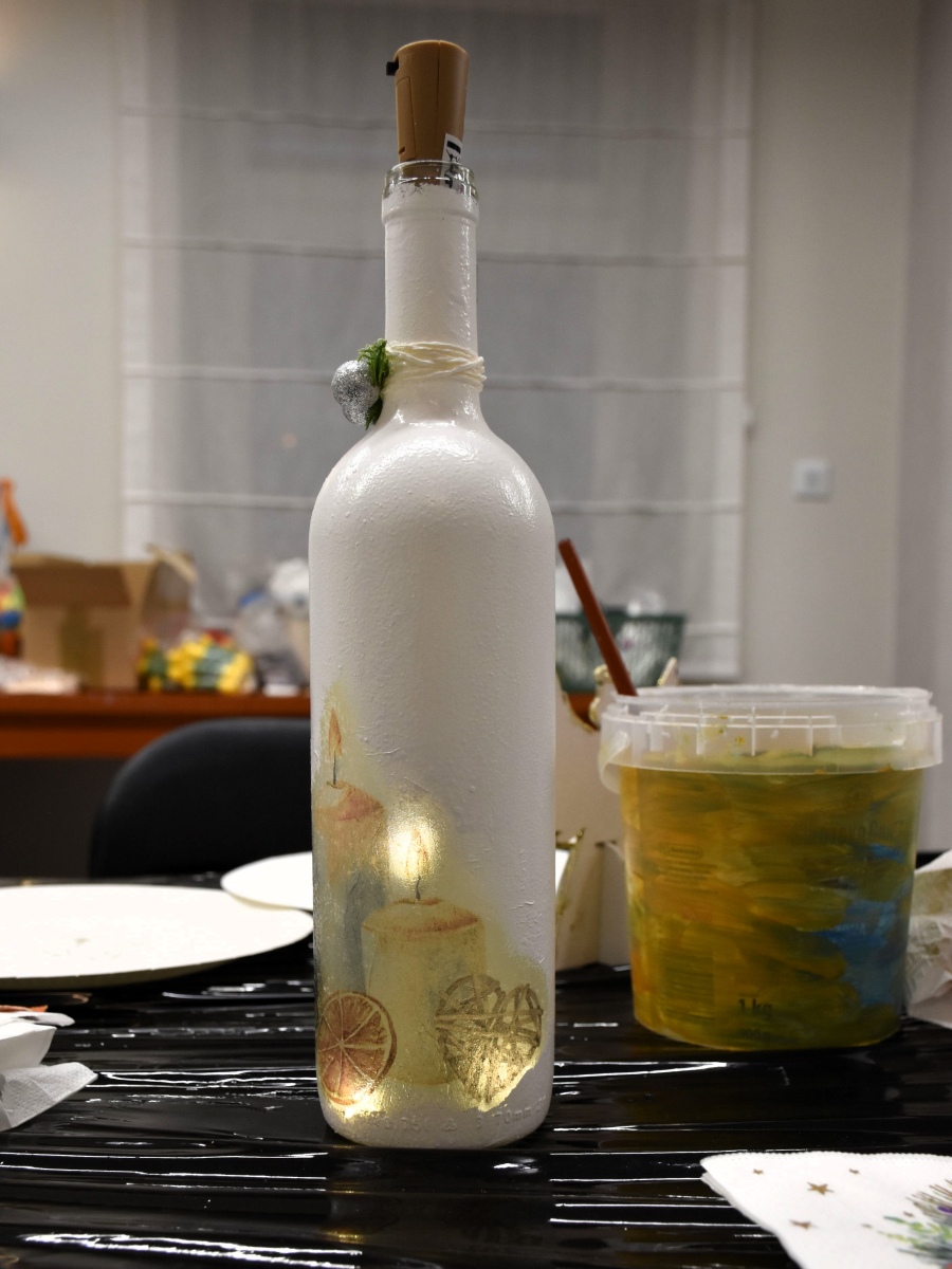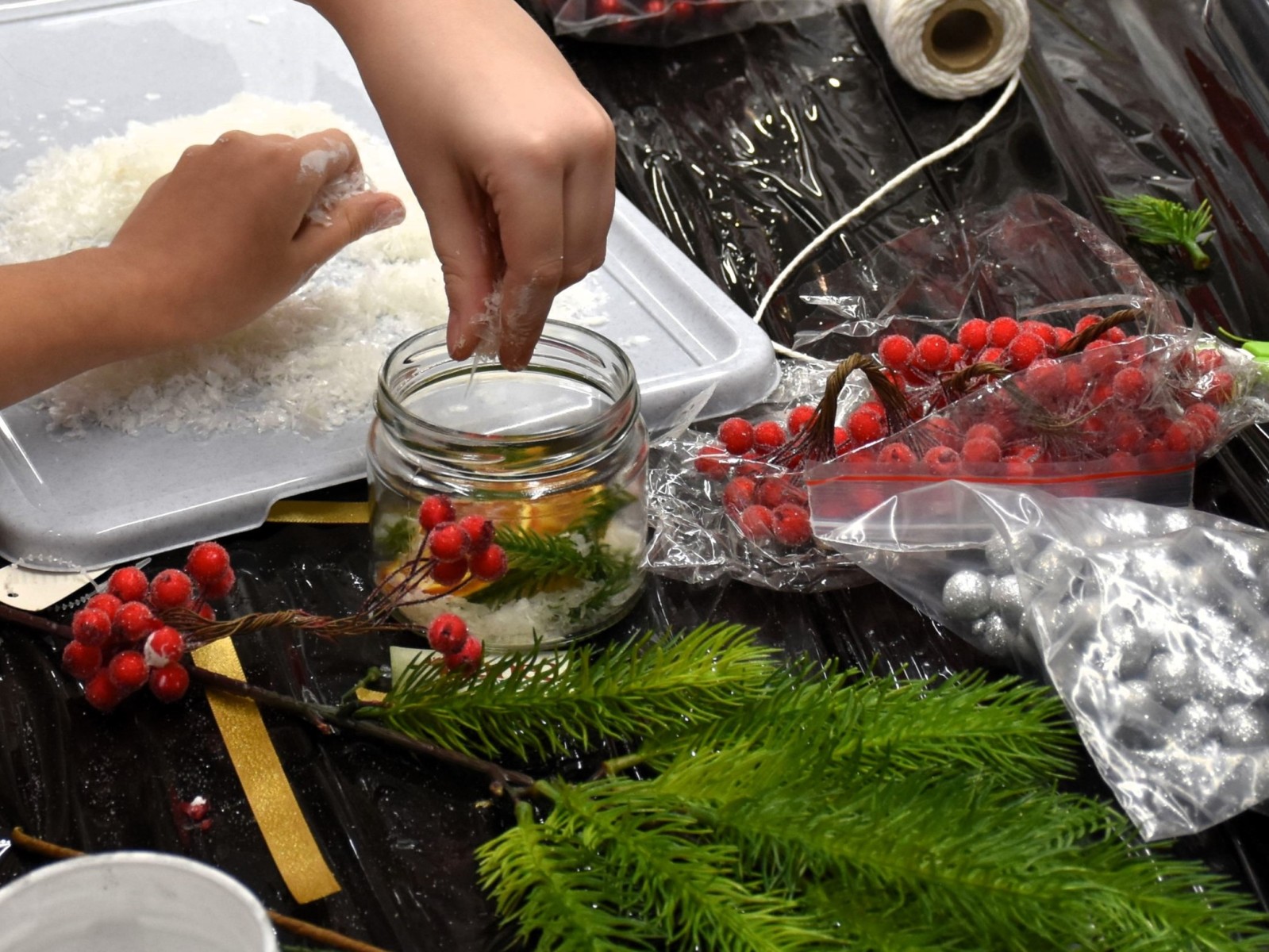 Powstały niepowtarzalne dekoracje – od lampionów po subtelne zawieszki na choinkę. Szczególnym zainteresowaniem cieszyło się tworzenie świątecznych lampek, które rozświetliły salę i wprowadziły magiczny nastrój, idealnie wpisujący się w klimat nadchodzących świąt.
