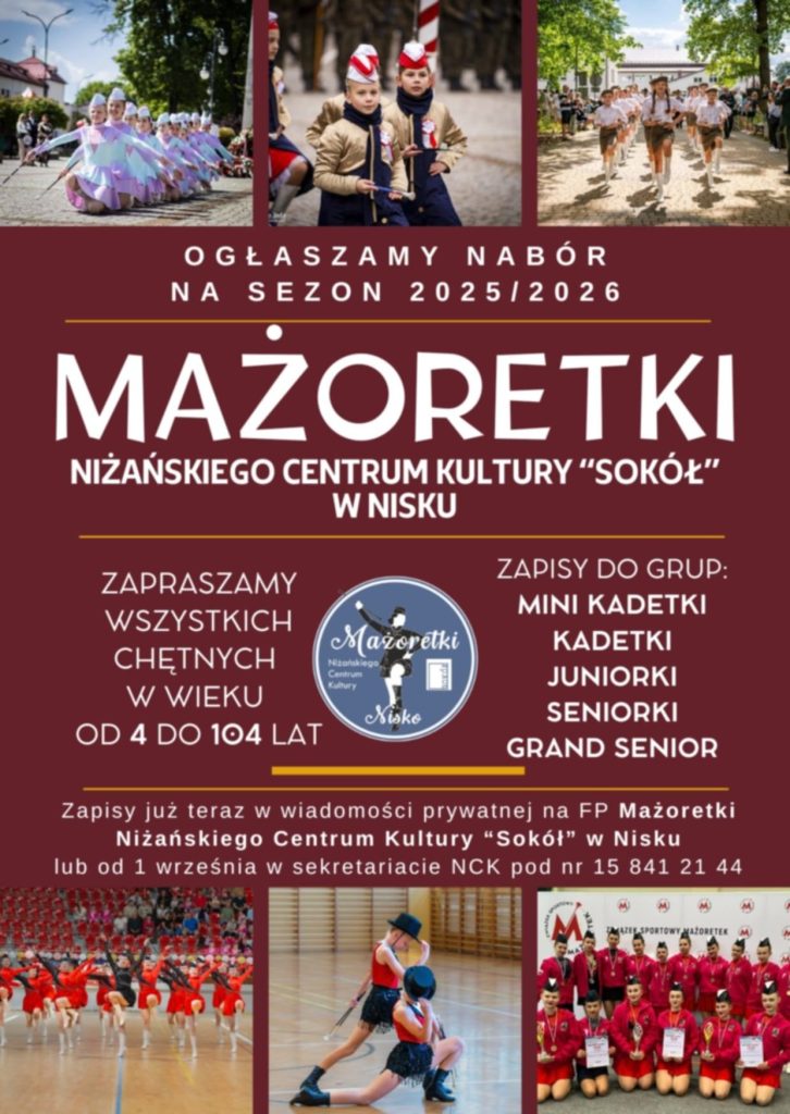 Szczegółowe informacje oraz zapisy w NCK „Sokół” w Nisku, ul. T. Kościuszki 9, tel. (15) 841 21 44.