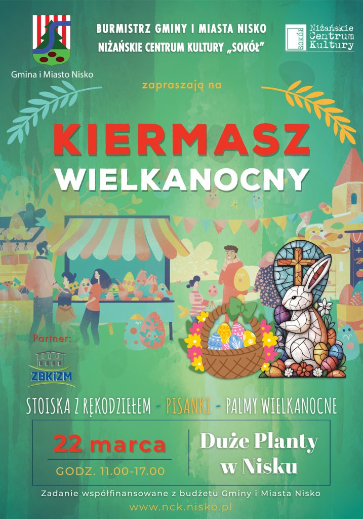 Burmistrz Gminy i Miasta Nisko oraz Niżańskie Centrum Kultury „Sokół” zapraszają na KIERMASZ WIELKANOCNY. W niedzielę, 22 marca, w godz. 11.00-17.00, na Dużych Plantach w Nisku będą na Państwa czekać wystawcy z rękodziełem i świątecznymi smakołykami.