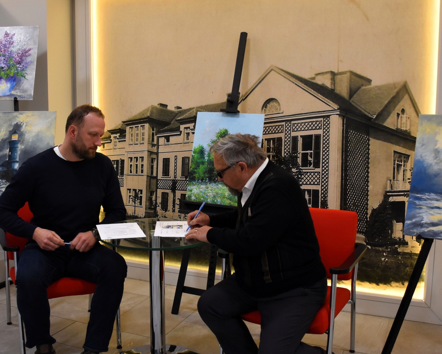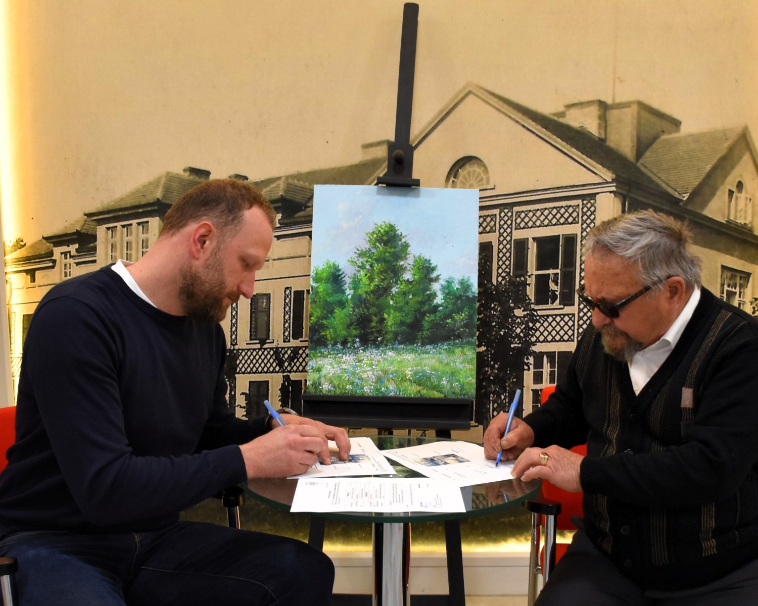 W środę, 14 kwietnia 2026 roku, kolekcja Niżańskiego Centrum Historii i Tradycji wzbogaciła się o kolejne obrazy autorstwa Pana Michała Potaczały – artysty z Niska, którego twórczość stanowi ważny element lokalnego pejzażu kulturowego. Twórca przekazał na ręce Dyrektora Niżańskiego Centrum Kultury „Sokół”, Pana Radosława Maziarza, nowe prace malarskie, będące uzupełnieniem wcześniej ofiarowanych zbiorów.
